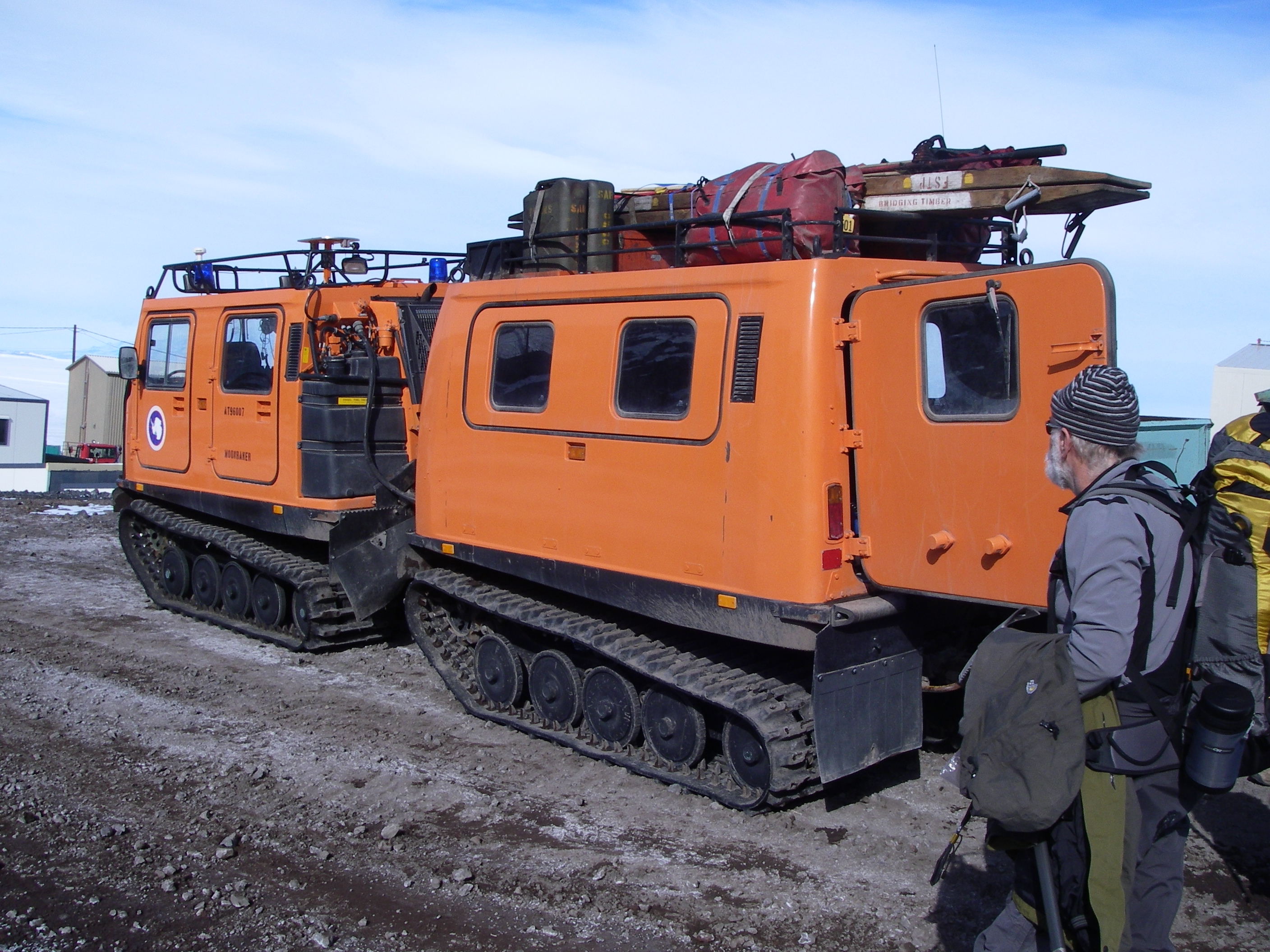 The Swiss Hageland vehicle used for various transport around McMurdo Station and to areas on the sea ice. McMurdo Station, Antarctica.