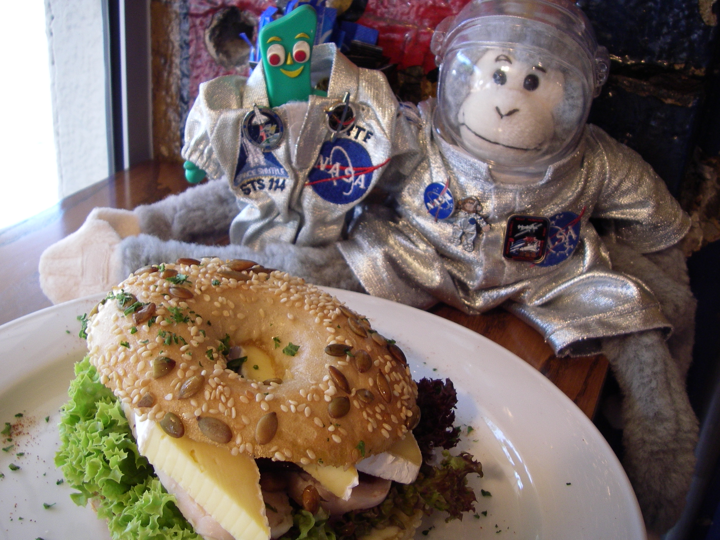 Gumby and Ms. Baker and their first lunch at Tricycle Café. Christchurch, New Zealand.