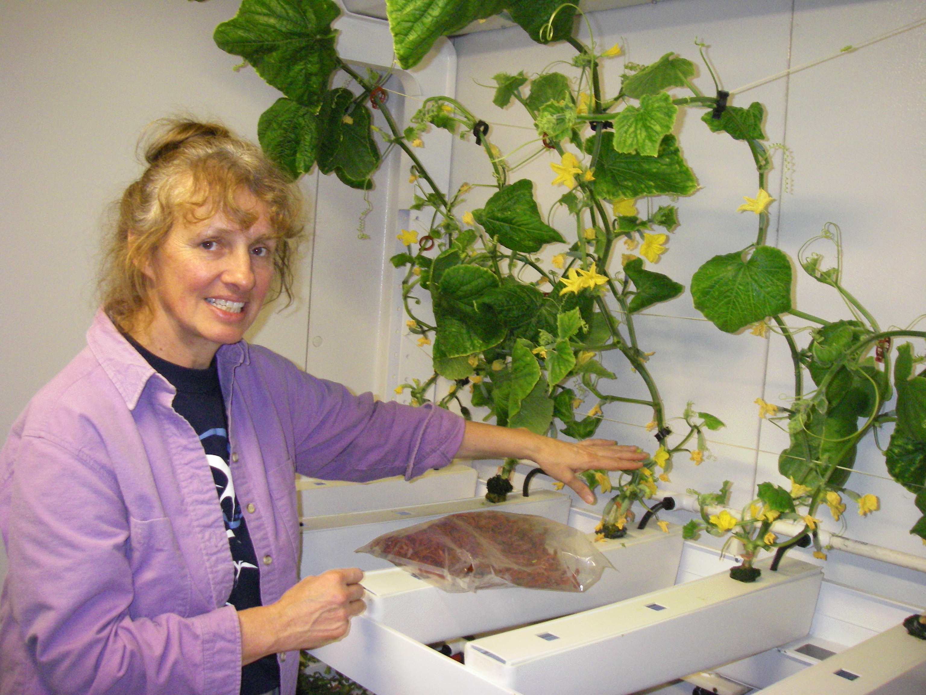 Elke Bergholz is helping take care of cucumber plants in the greenhouse of the Amundsen-Scott South Pole Station, Antarctica.