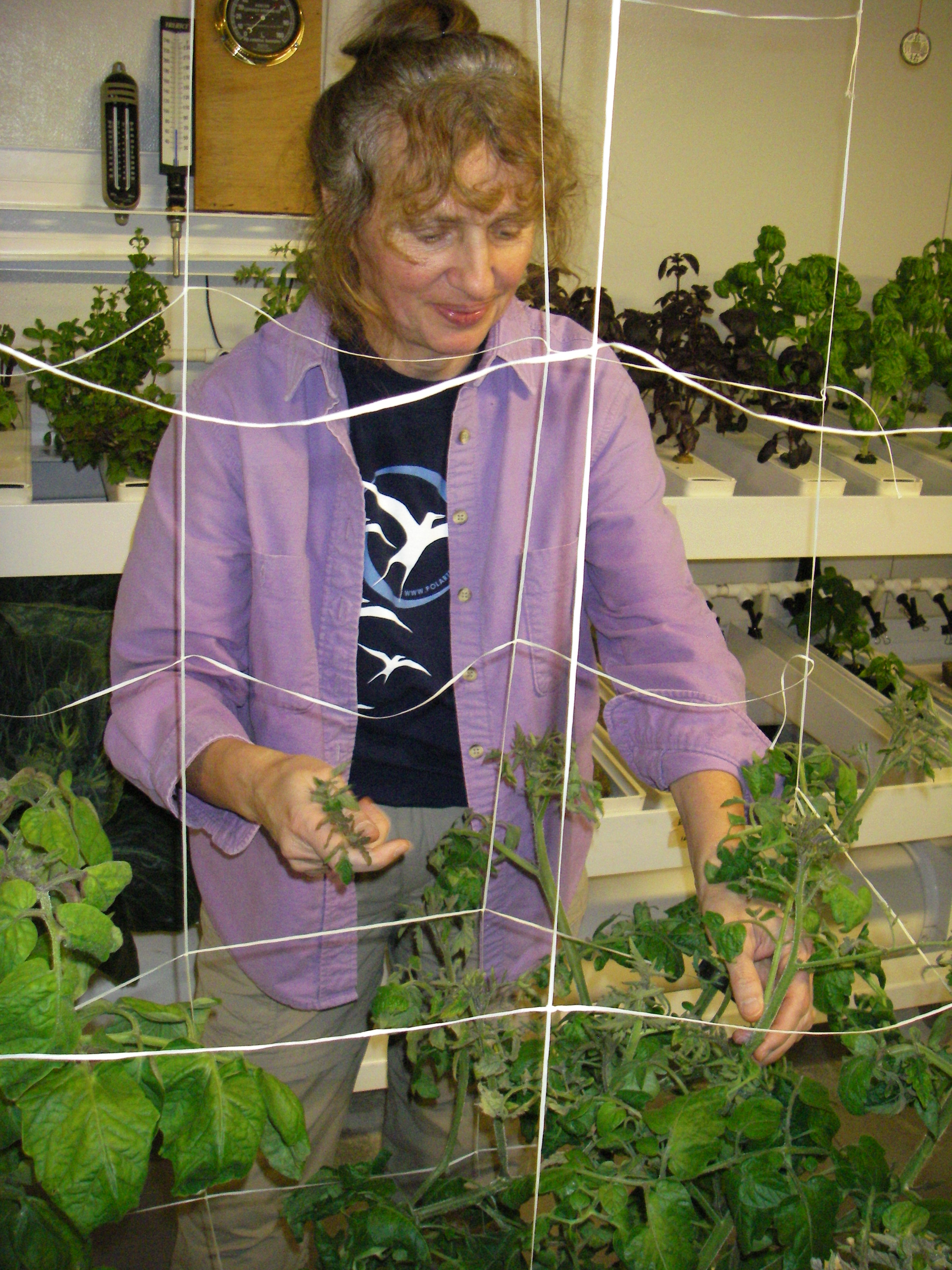 Elke Bergholz is helping take care of tomato plants in the greenhouse of the Amundsen-Scott South Pole Station, Antarctica.