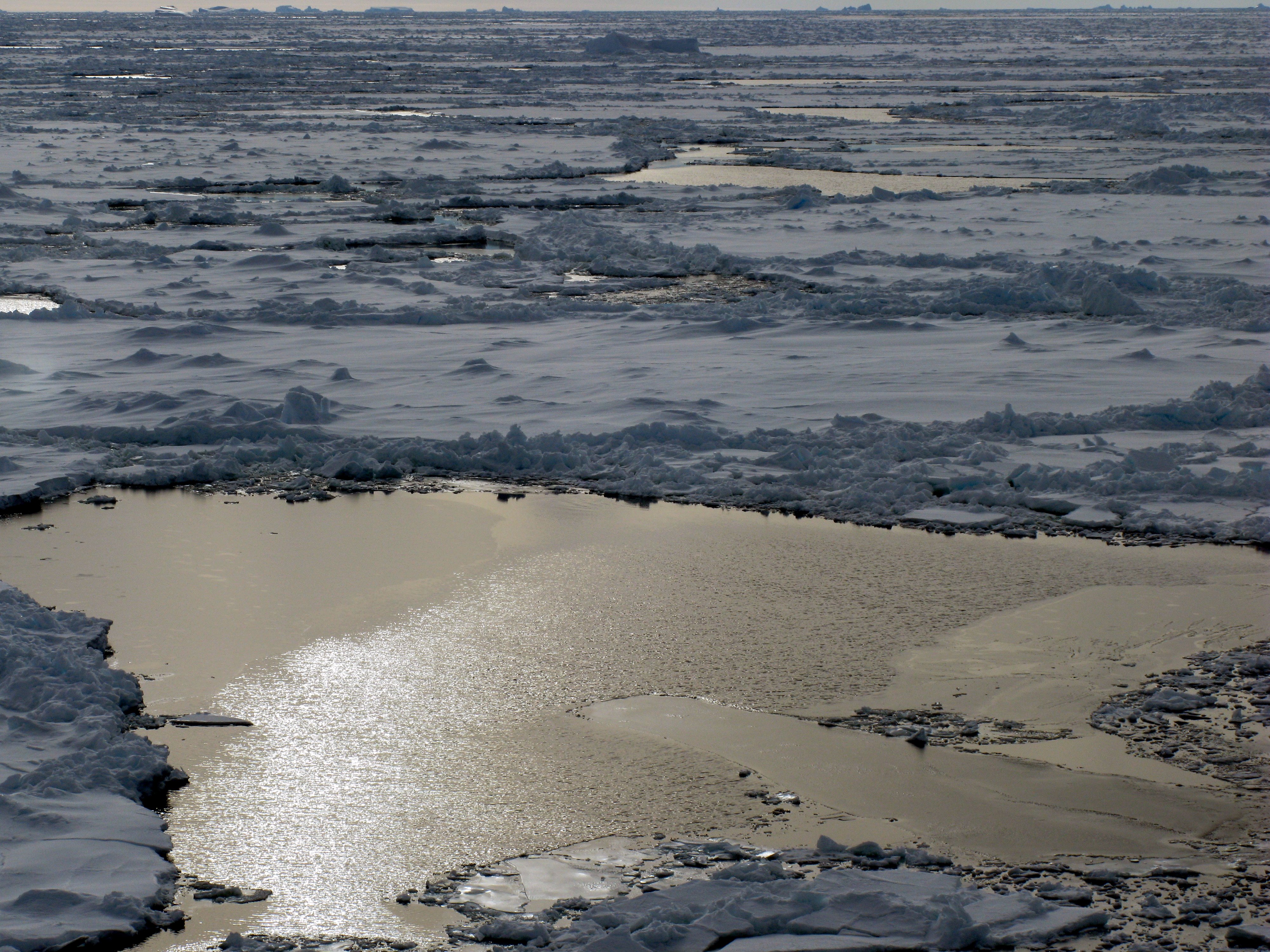 Wide leads in first year ice floes. Aboard the icebreaker Oden between the Amundsen Sea and the Ross Sea.
