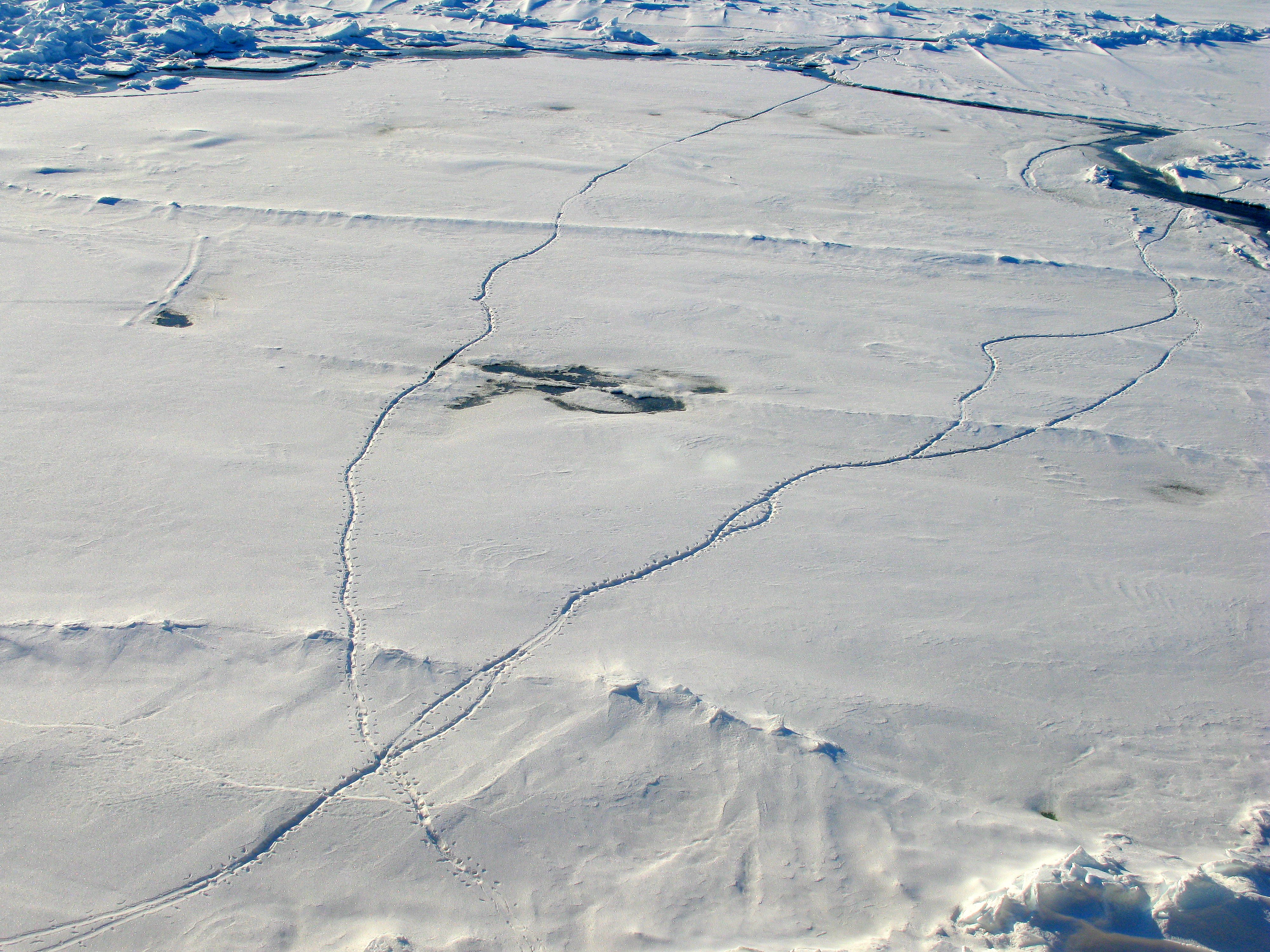 Penguin tracks and dive holes. Aboard the icebreaker Oden between the Amundsen Sea and the Ross Sea.