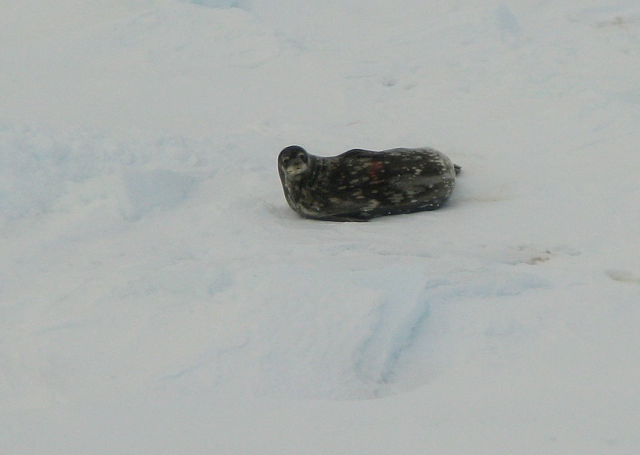 A Weddell seal strikes a pose. Aboard the icebreaker Oden in the Ross Sea.