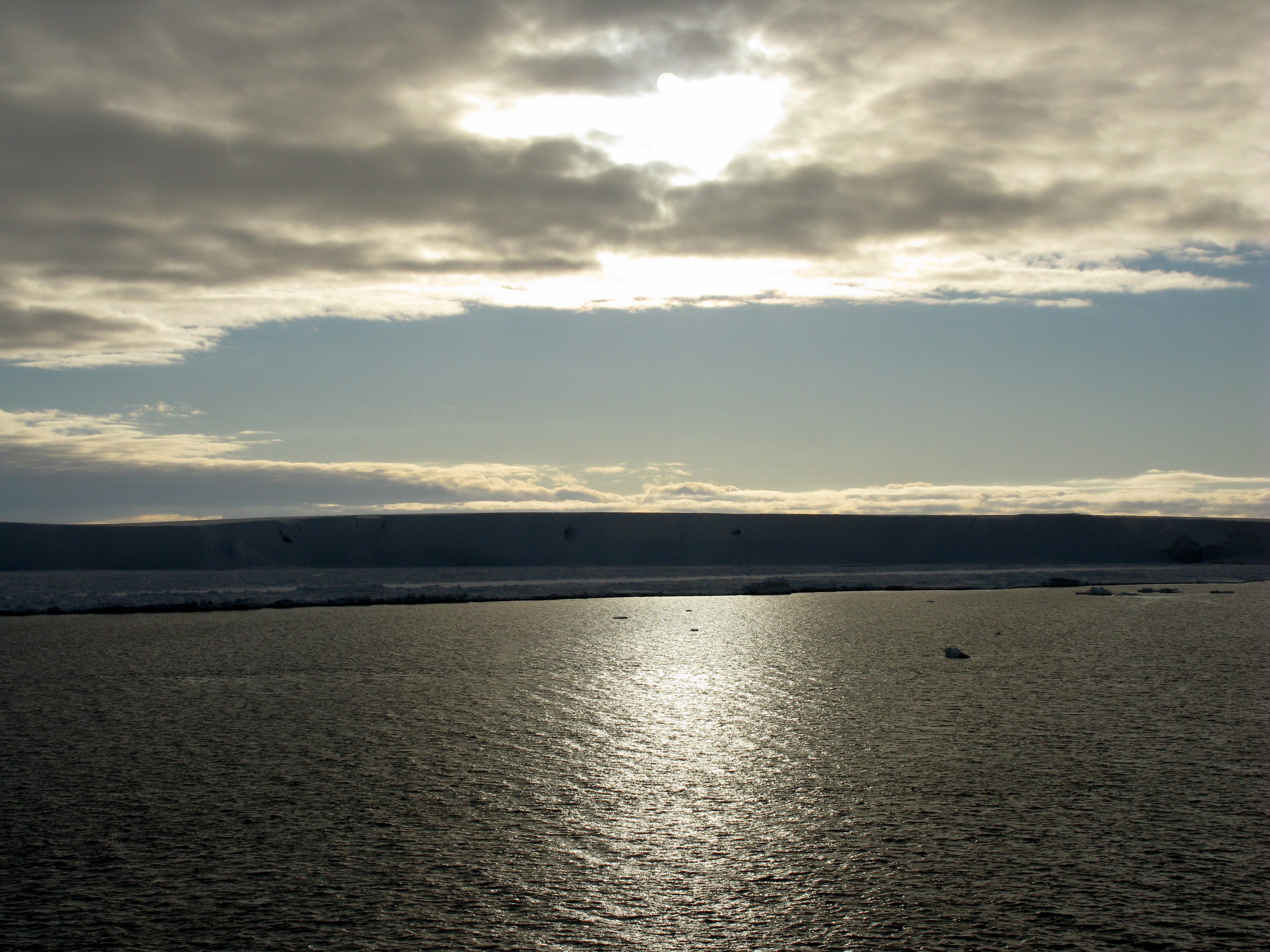 The Ross Ice Shelf in its own shadow. Aboard the icebreaker Oden in the Ross Sea.