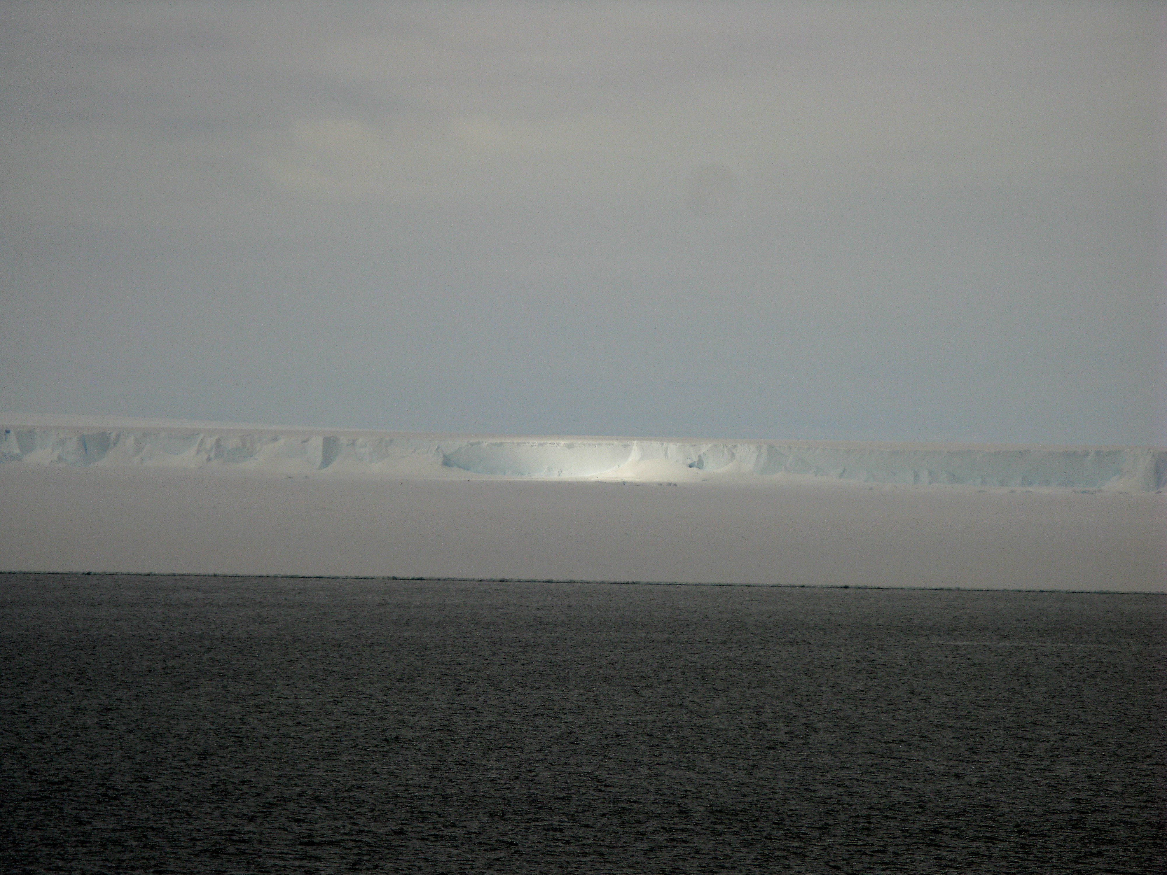 The Ross Ice Shelf gleams in the sunlight at the Bay of Whales. Aboard the icebreaker Oden in the Ross Sea.