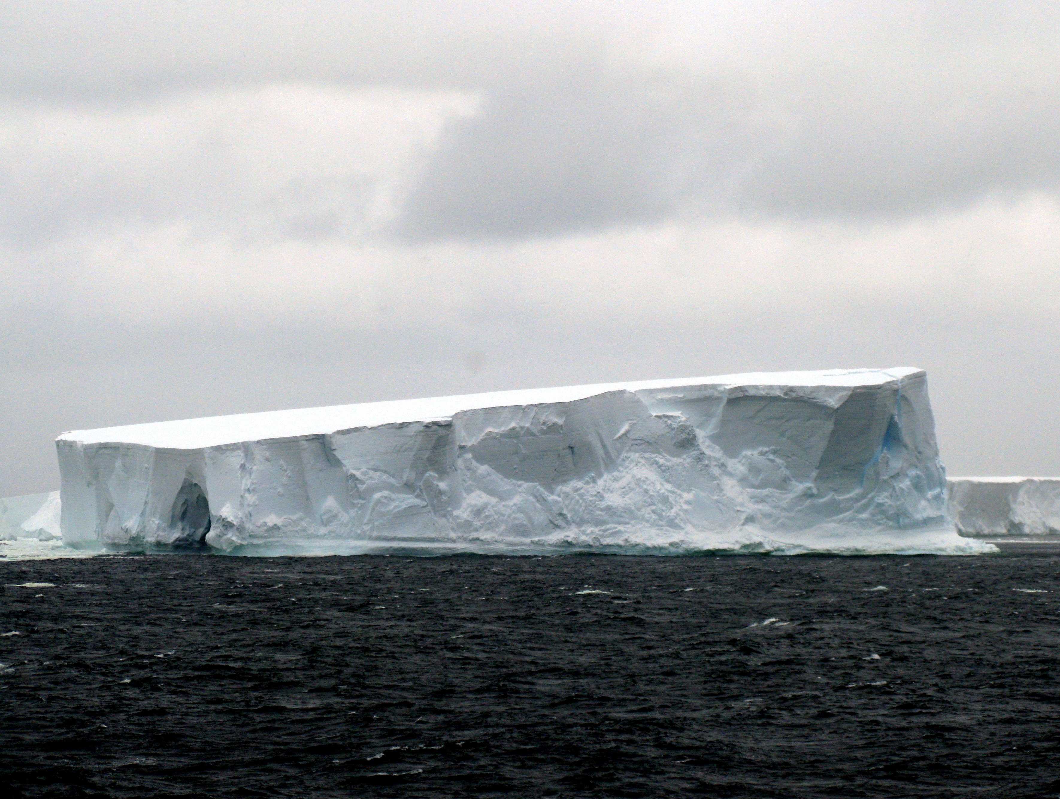 An iceberg with melt holes at both ends. Aboard the icebreaker Oden in the Amundsen Sea.