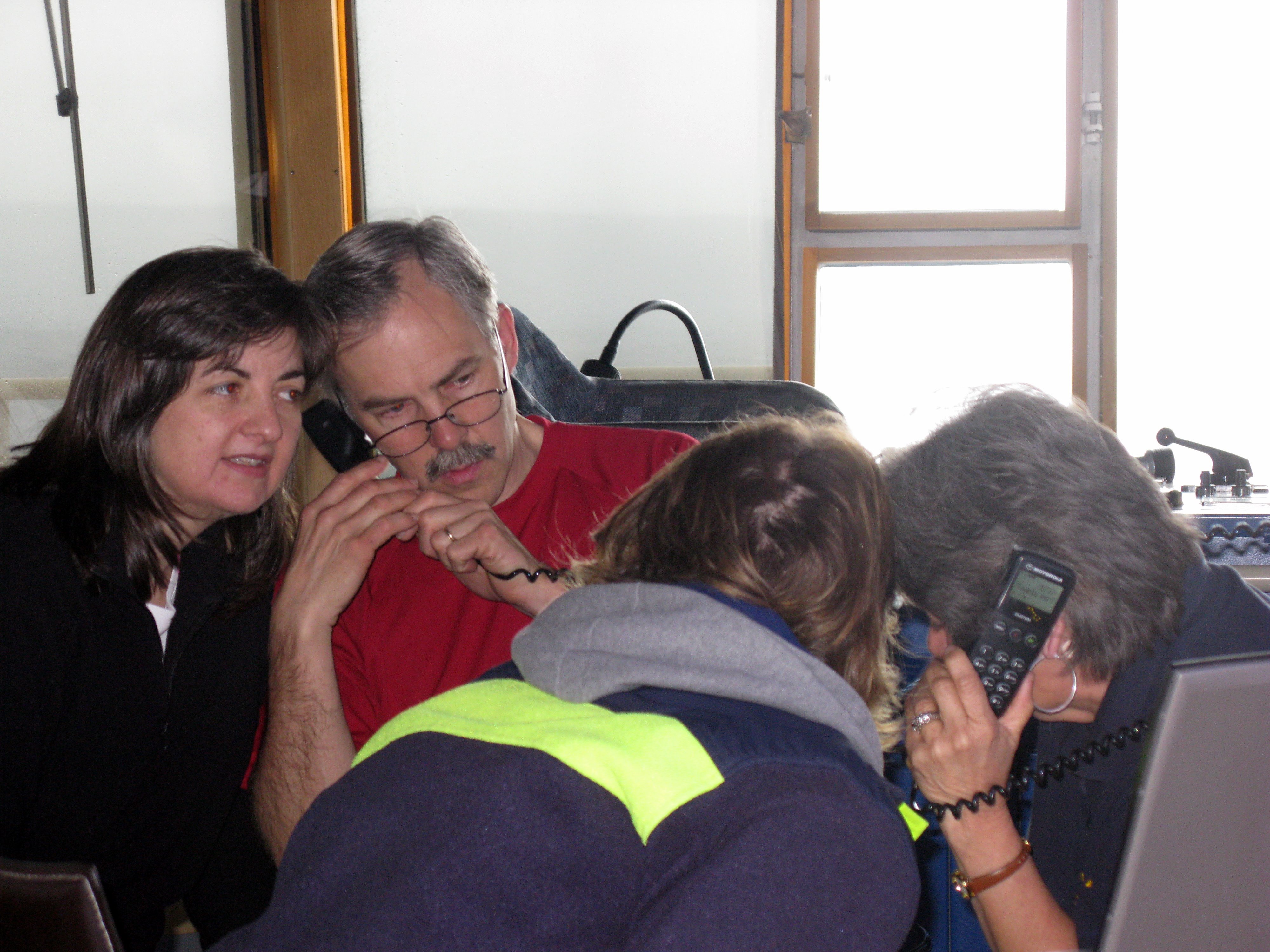 Researchers Tish Yager, Rob Sherrell, Angeta Fransson, and Lollie Garay listen to questions during the Live from IPY event. Aboard the icebreaker Oden in the Amundsen Sea near the Getz Ice Shelf.