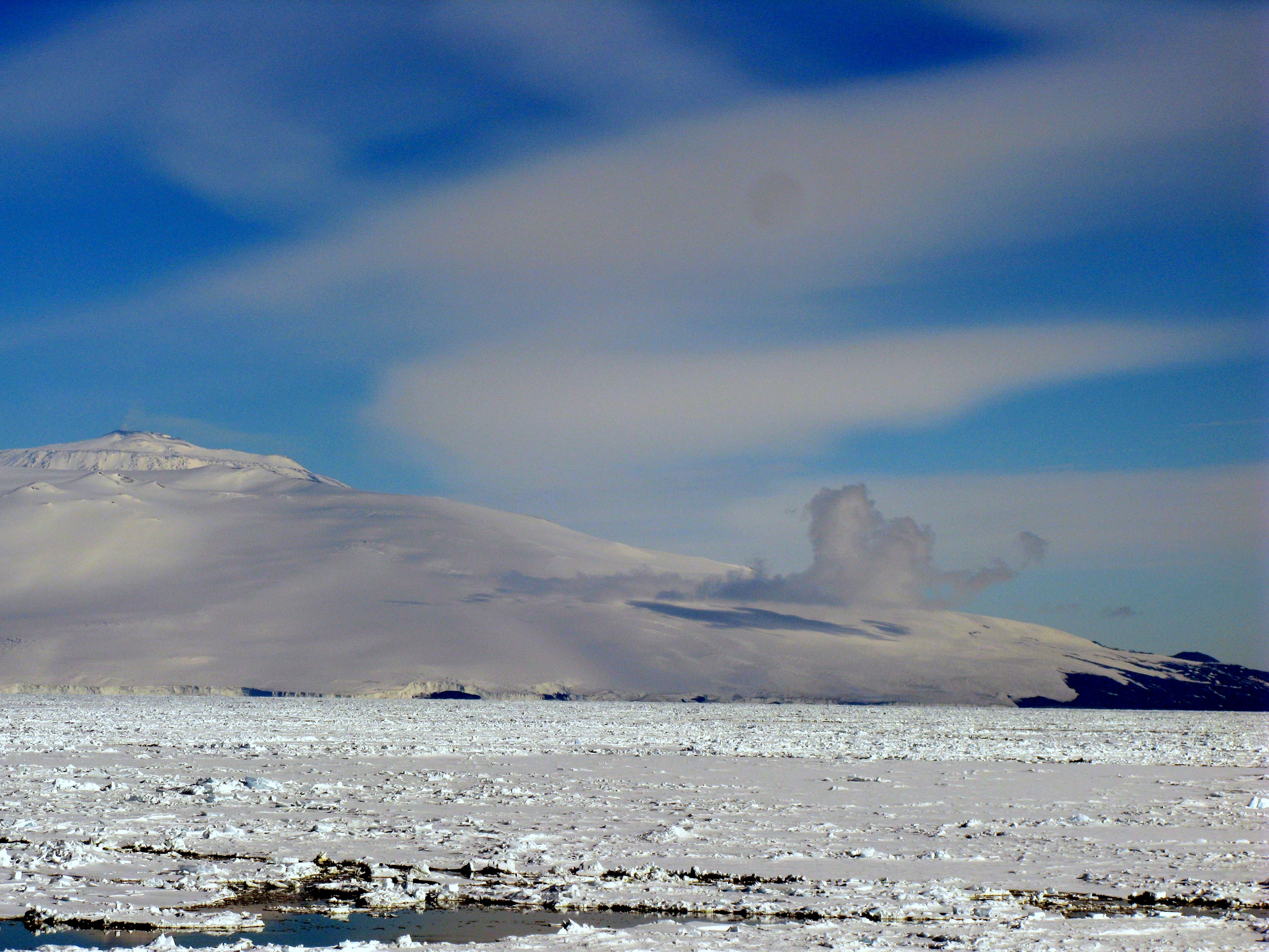 Outgassing from a vent on the side of Mt. Erebus reminds us it is indeed active. Aboard the icebreaker Oden in the Ross Sea.
