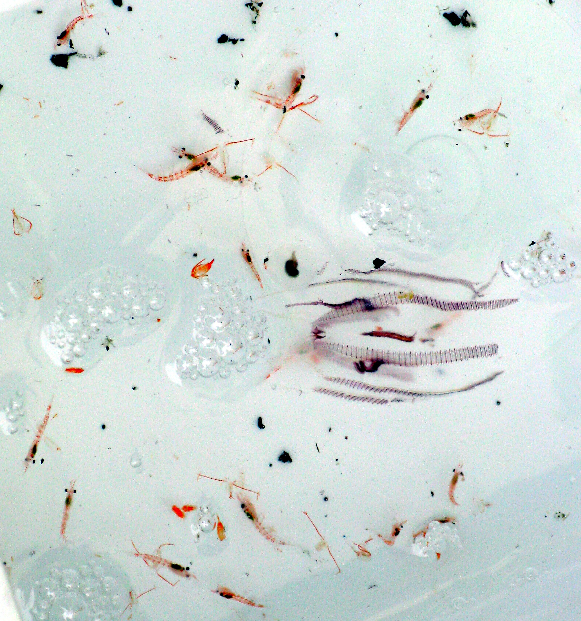 A plankton catch shows small amount of krill and ice worms. Aboard the icebreaker Oden in the Amundsen Sea.