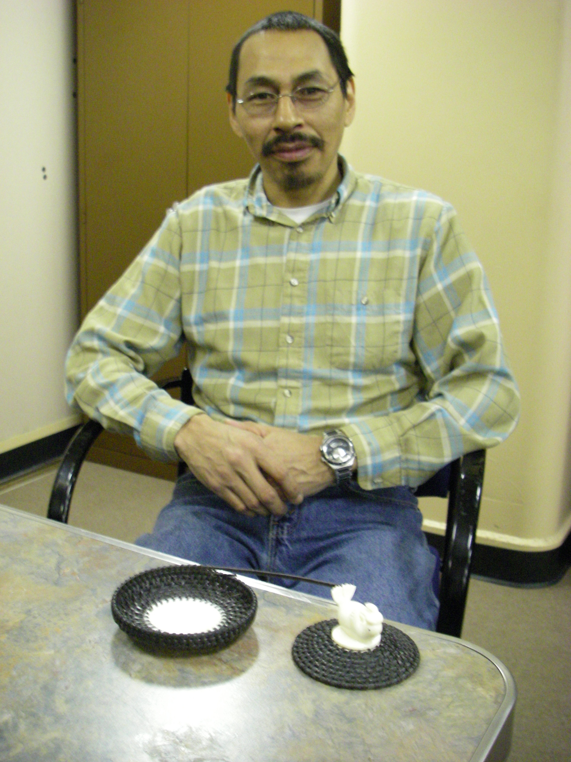 Lee Harris and his baleen basket. On the USCGC Healy icebreaker, on the Bering Sea.