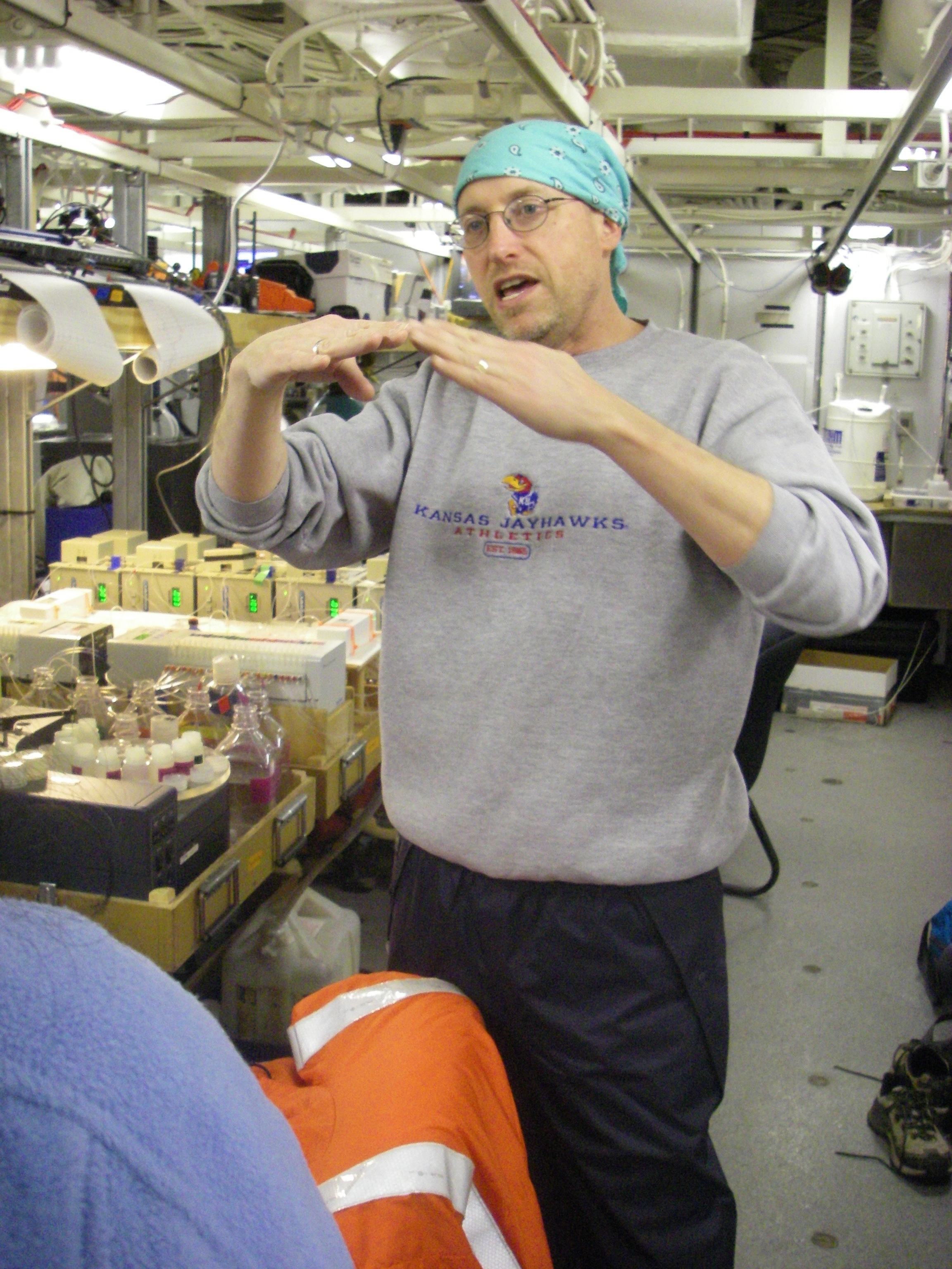 Cal describing what he does. On the USCGC Healy icebreaker, on the Bering Sea.