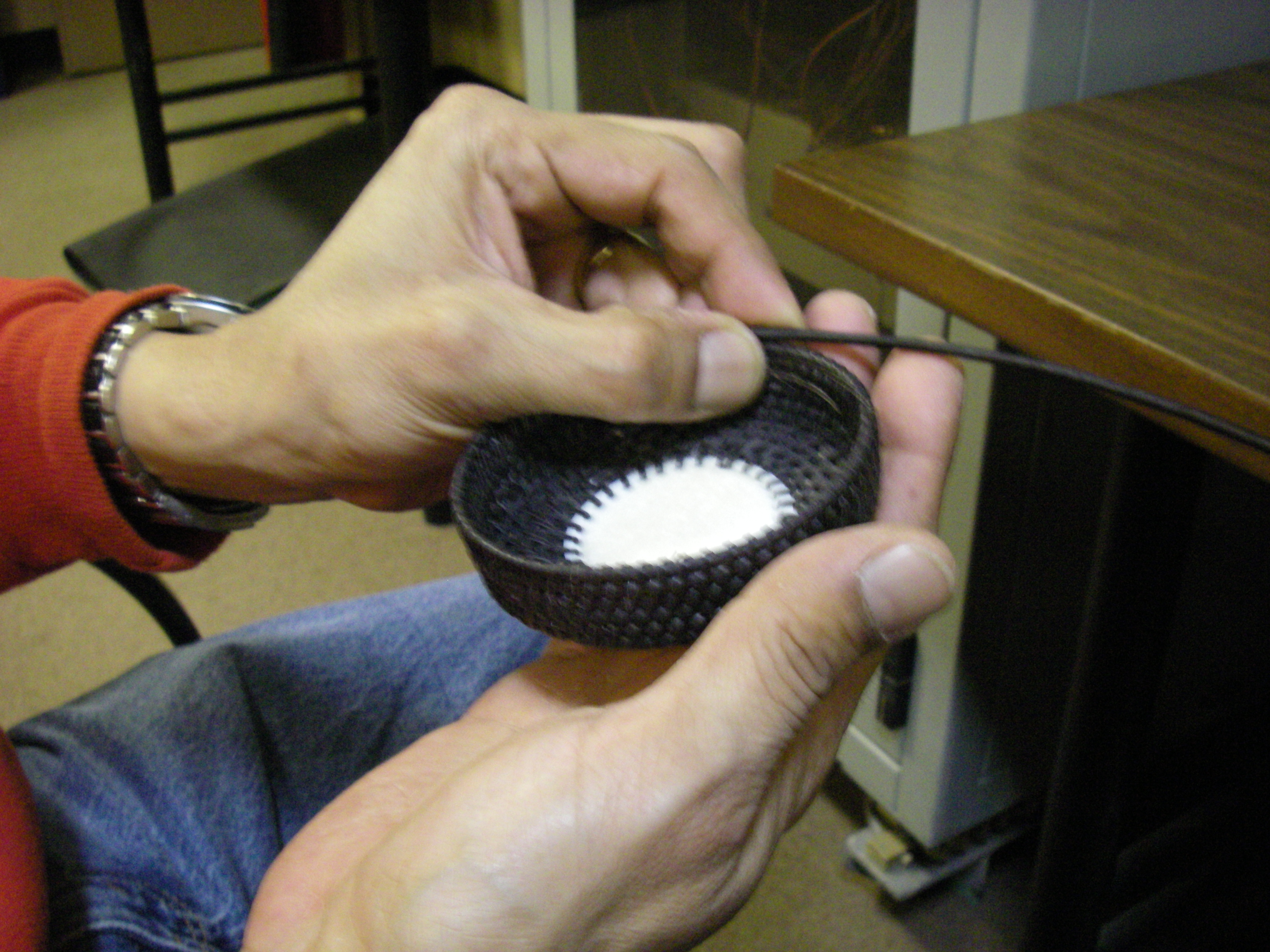 Lee Harris working on a basket. On the USCGC Healy icebreaker, on the Bering Sea.
