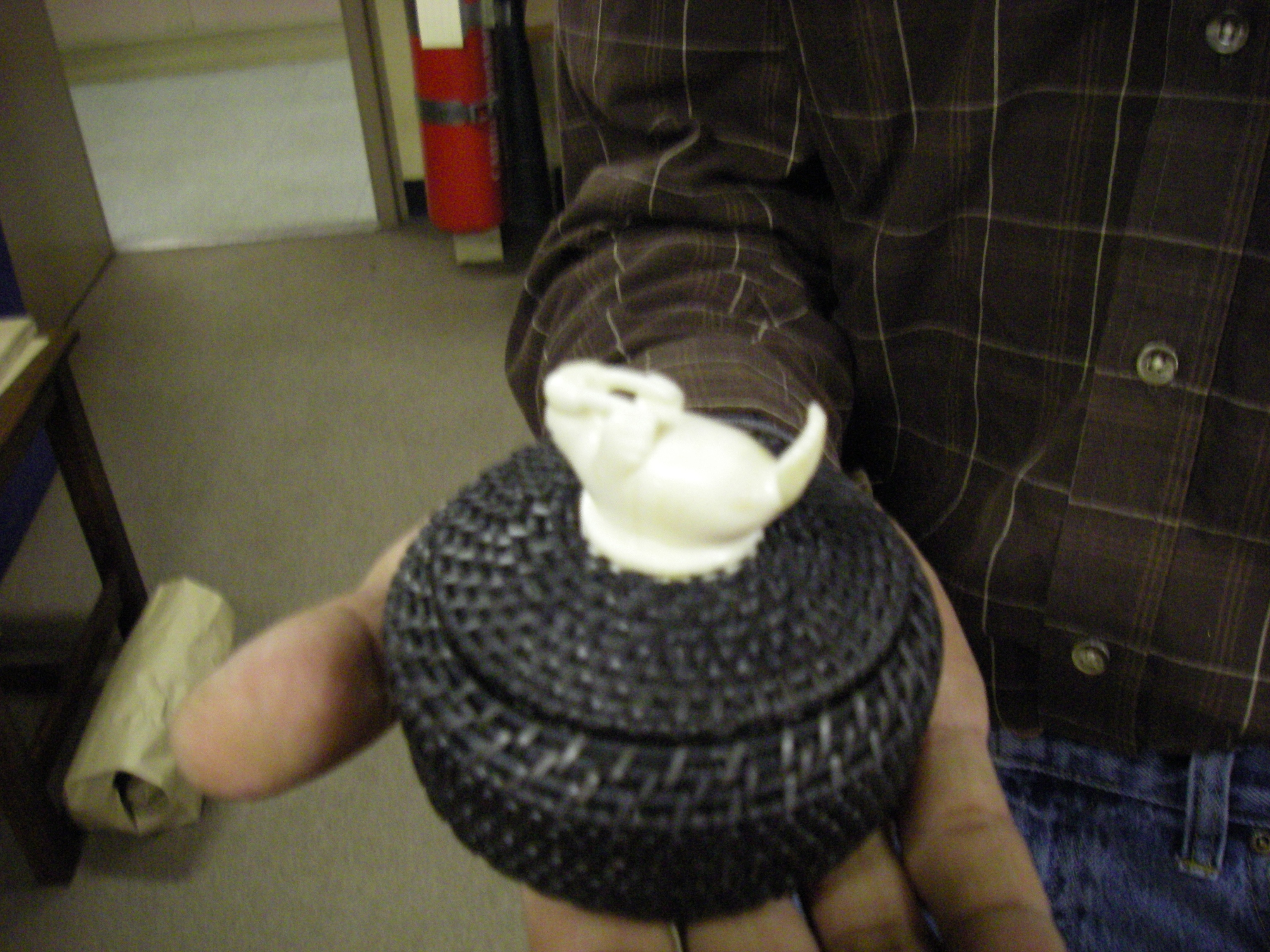 Lee Harris and his finished basket. On the USCGC Healy icebreaker, on the Bering Sea.