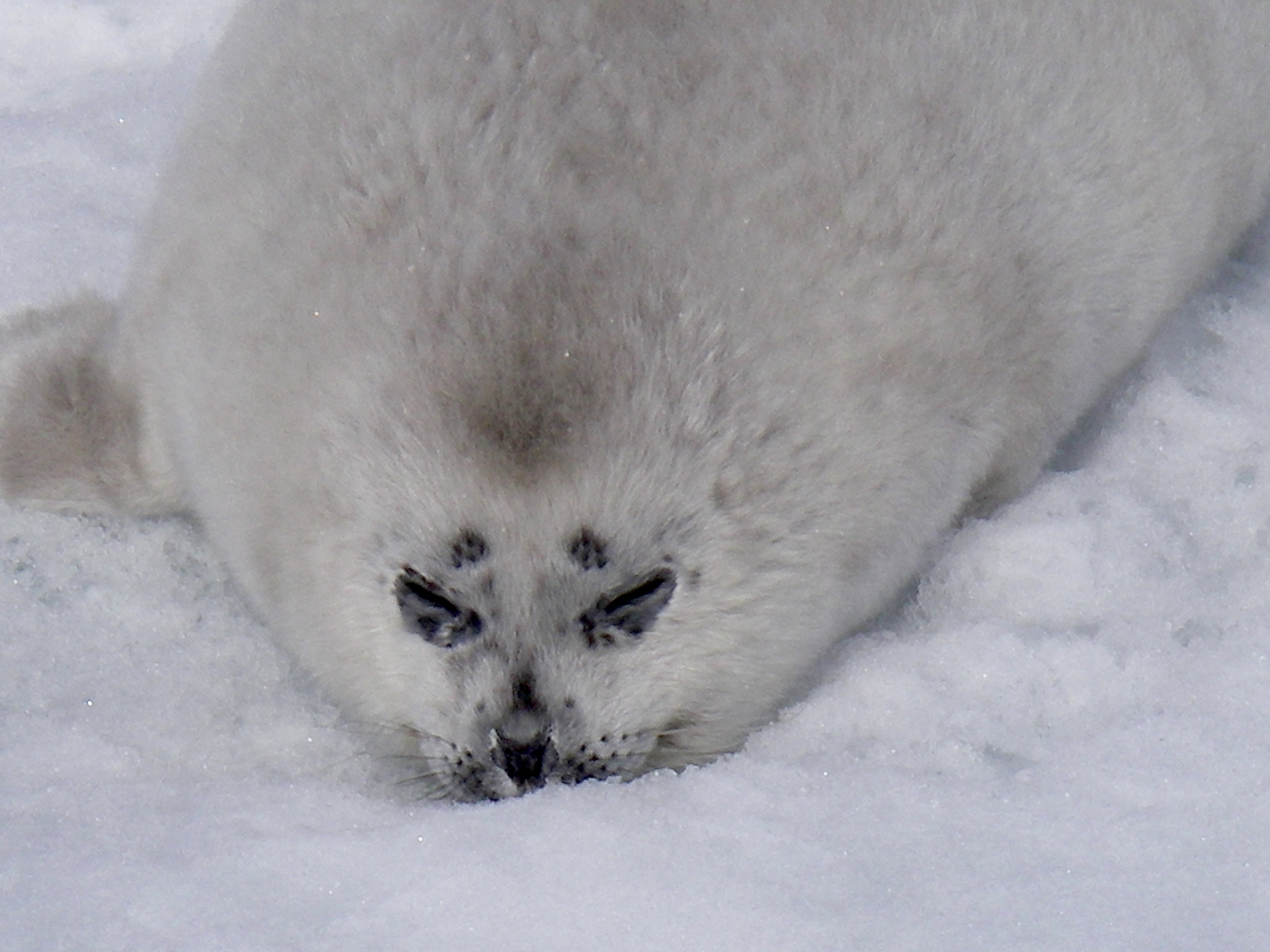Exhausted baby seal. On the sea ice, near the USCGC Healy icebreaker on the Bering Sea.