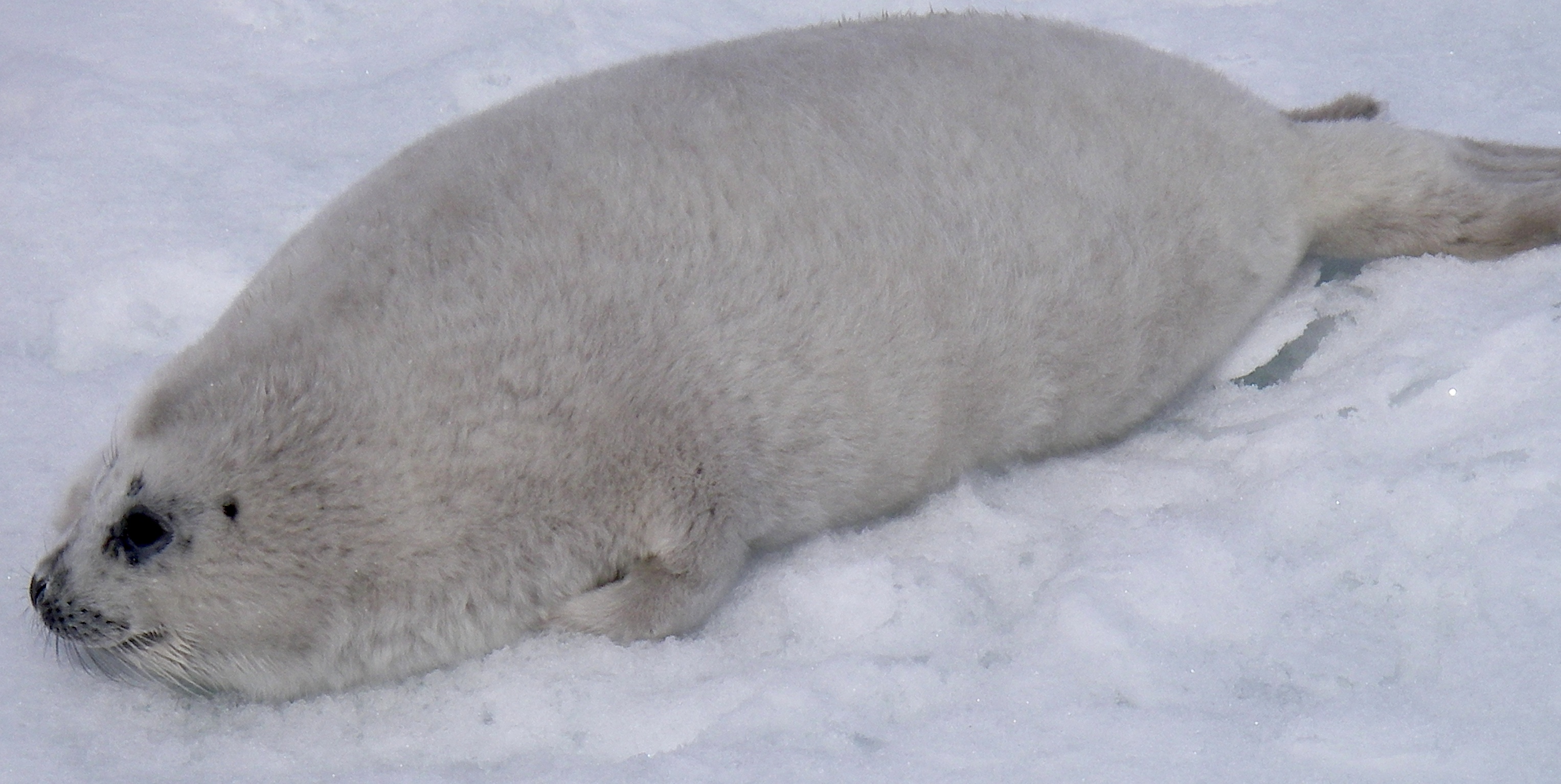 Where's my momma? A baby spotted seal waits for its mom on the sea ice of the Bering Sea, near the USCGC Healy icebreaker.