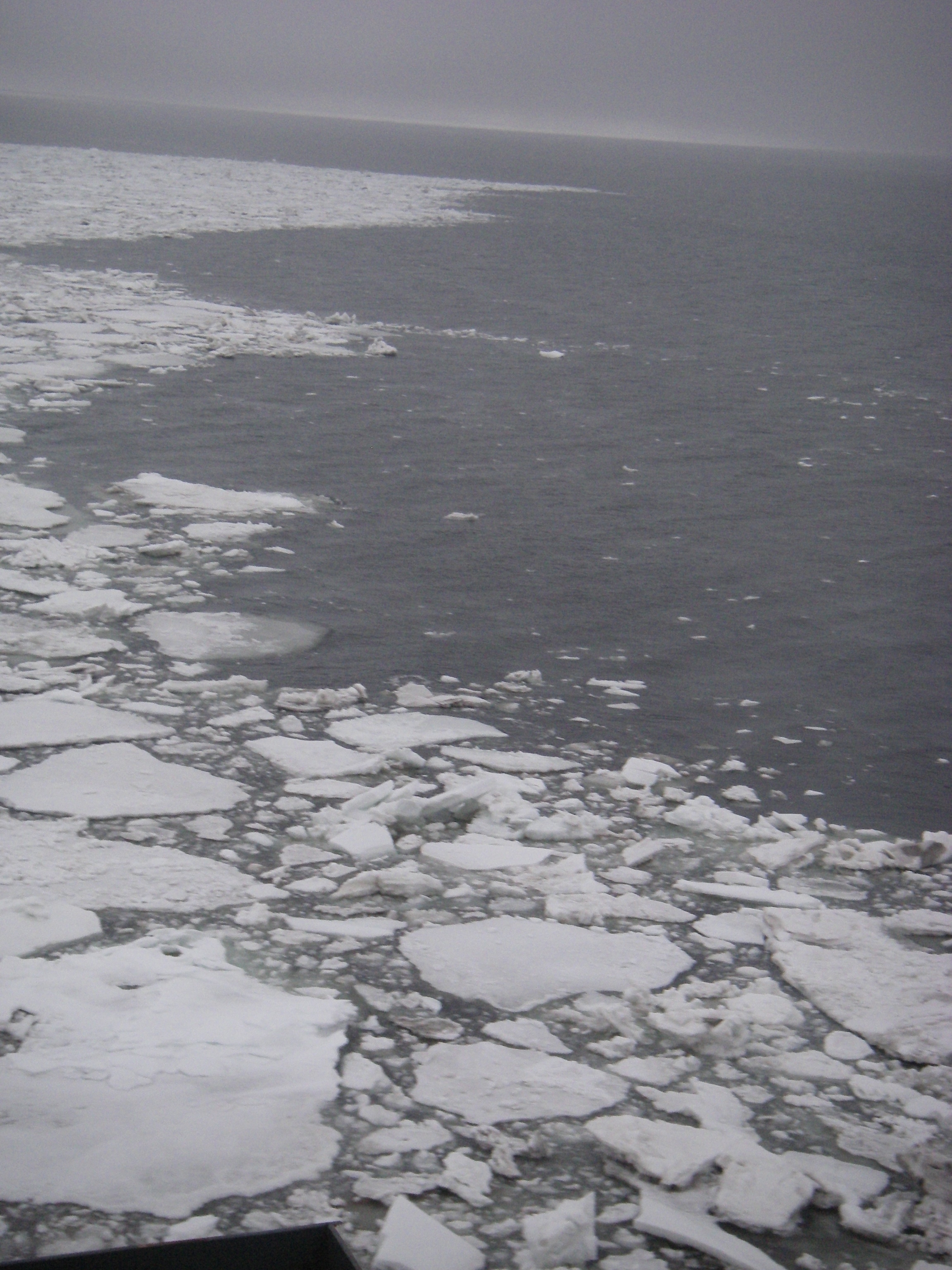 The end of the sea ice on the Bering Sea, as seen from the USCGC Healy icebreaker.