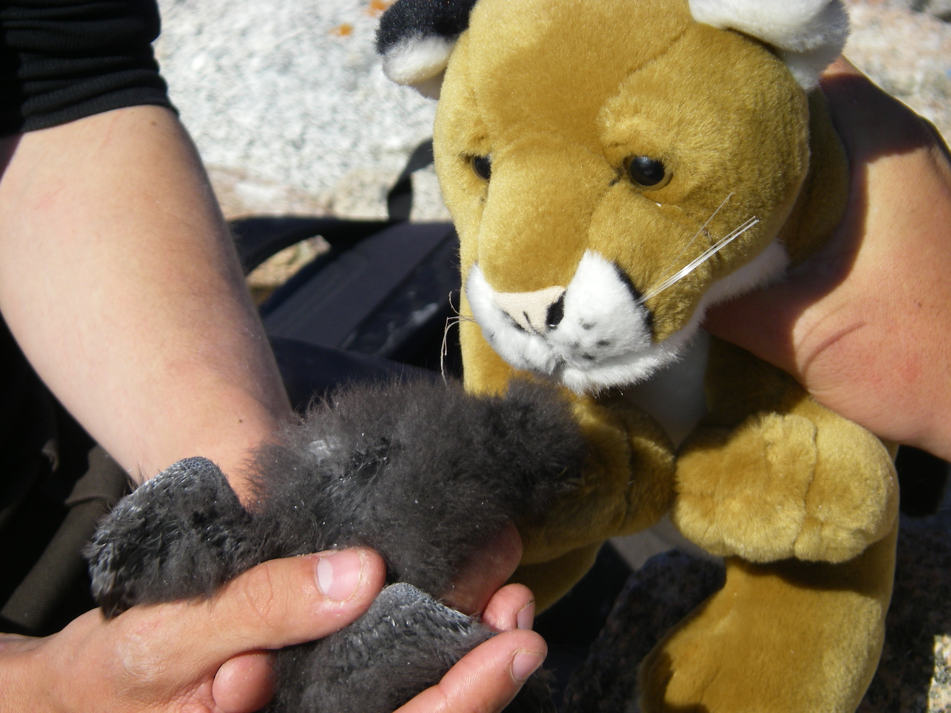 CJ examines a Little Auk chick at the Little Auk field colony. Kap Hoegh, Greenland.