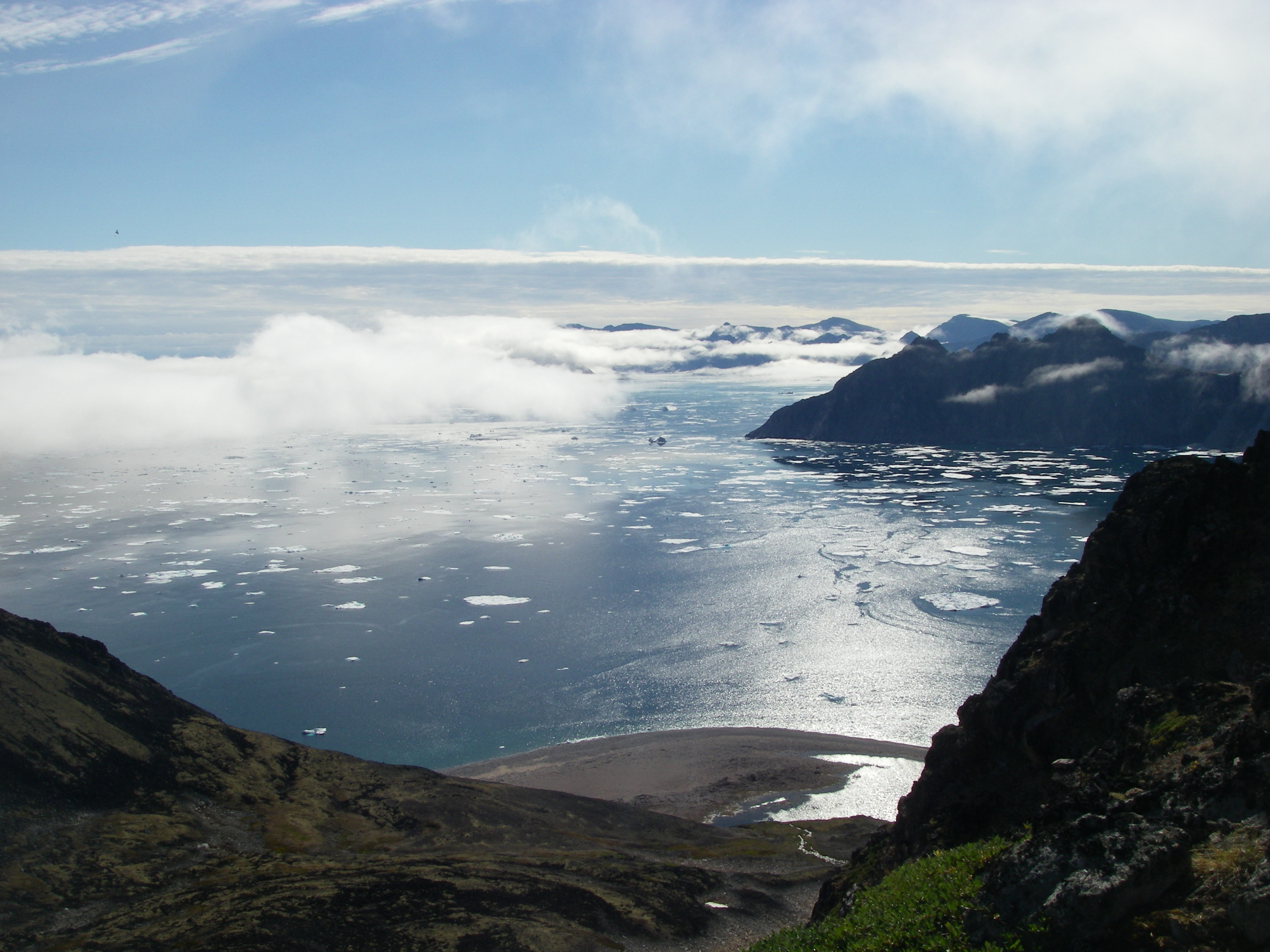 View of the Greenland Sea from the top of the Little Auk colony at Kap Hoegh, Greenland. Kap Hoegh, Greenland.