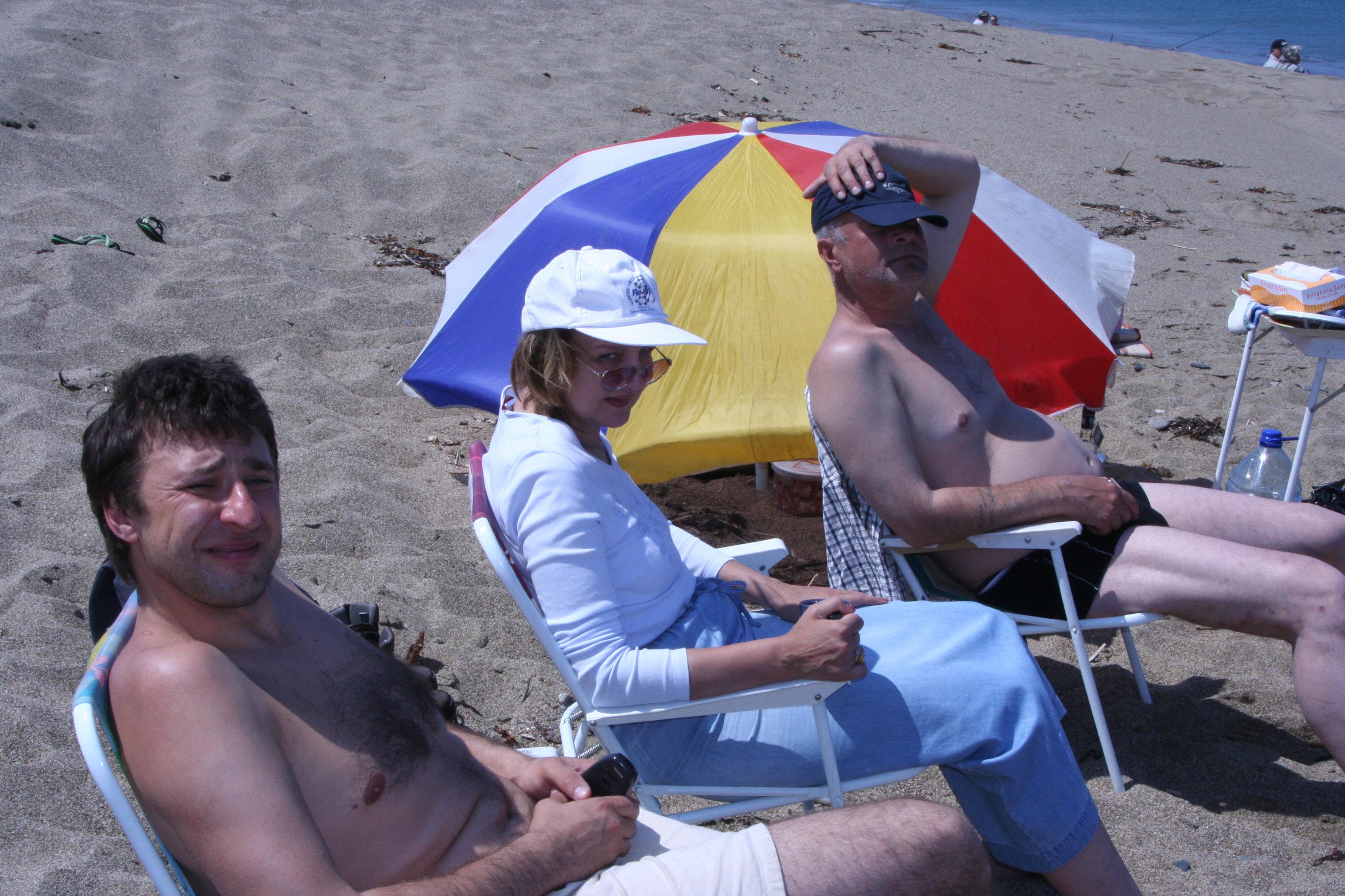 Anton (last name unknown), Tatiana Roon and Alexander Rybin enjoying a day at the beach on the Sea of Okhotsk, Sakhalin Island, Russia.