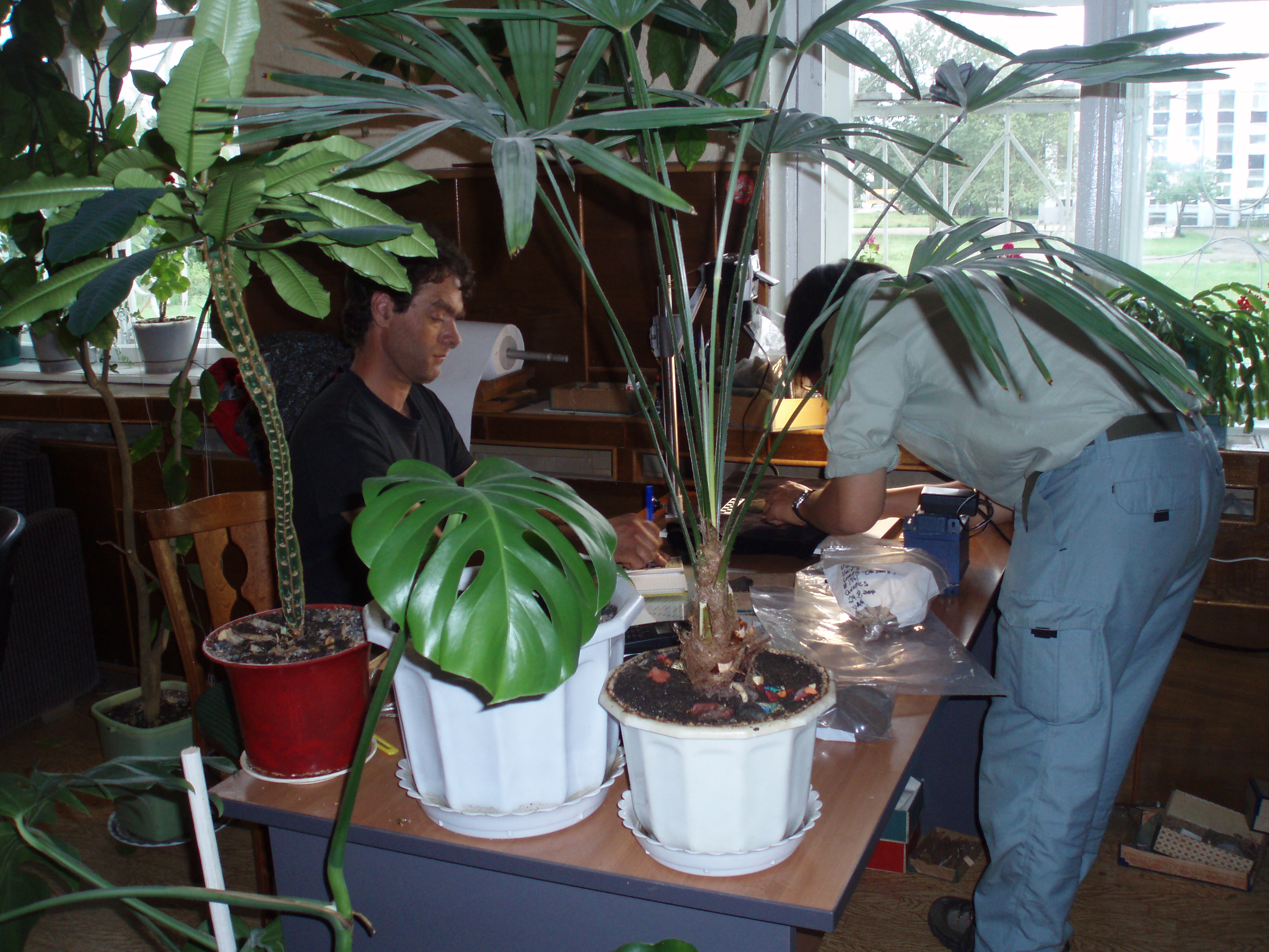 Ben Fitzhugh and Taku Osaka photographing ceramics and artifacts at the Sakhalin Regional Museum. Sakhalin Regional Museum, Yuzhno-Sakhalinsk, Russia.