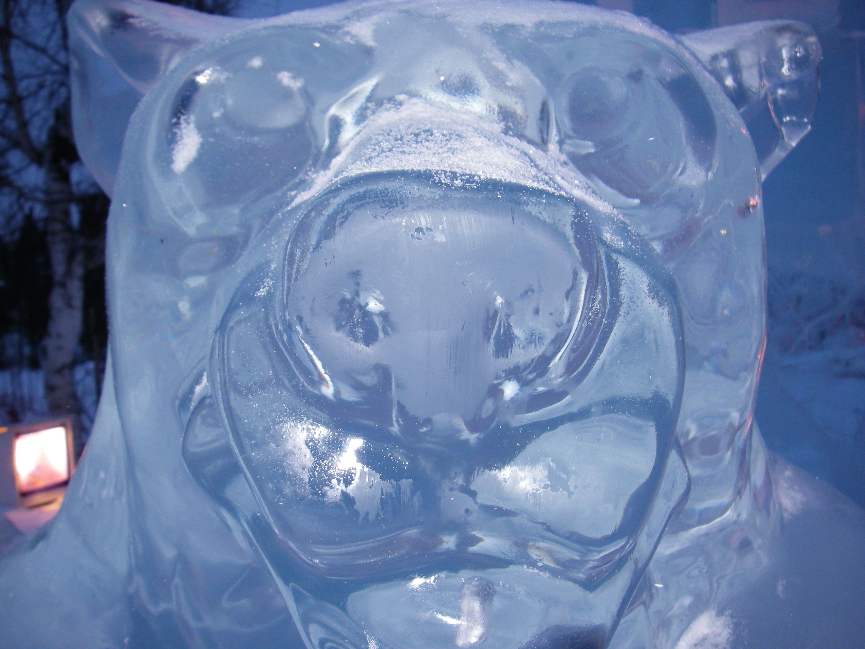 Close up of a polar bear ice carving at the World Ice Art Championships in Fairbanks, Alaska.