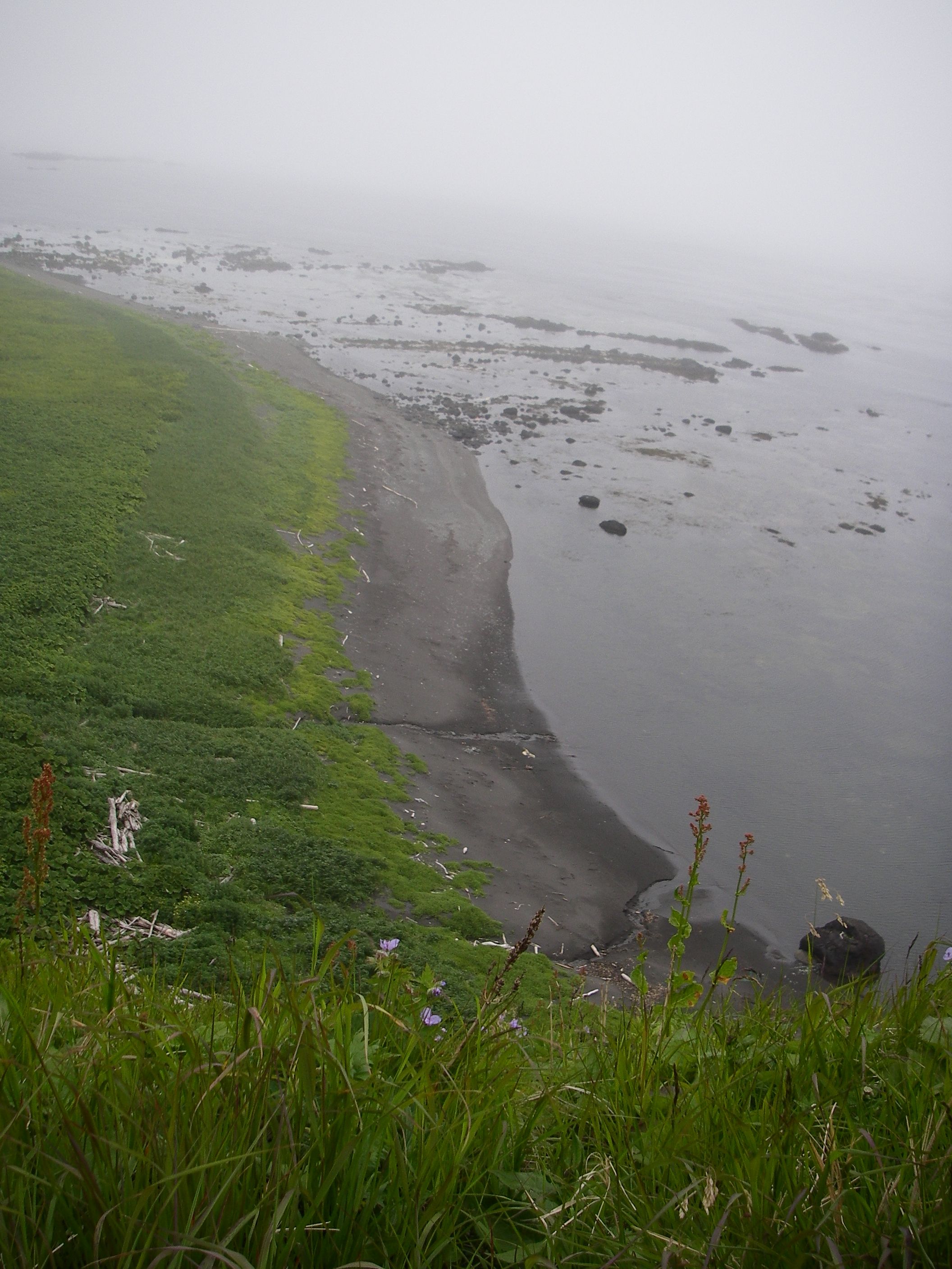 The beach looking south of the Vodapadnaya excavation site, Simushir, Kuril Islands, Russia.