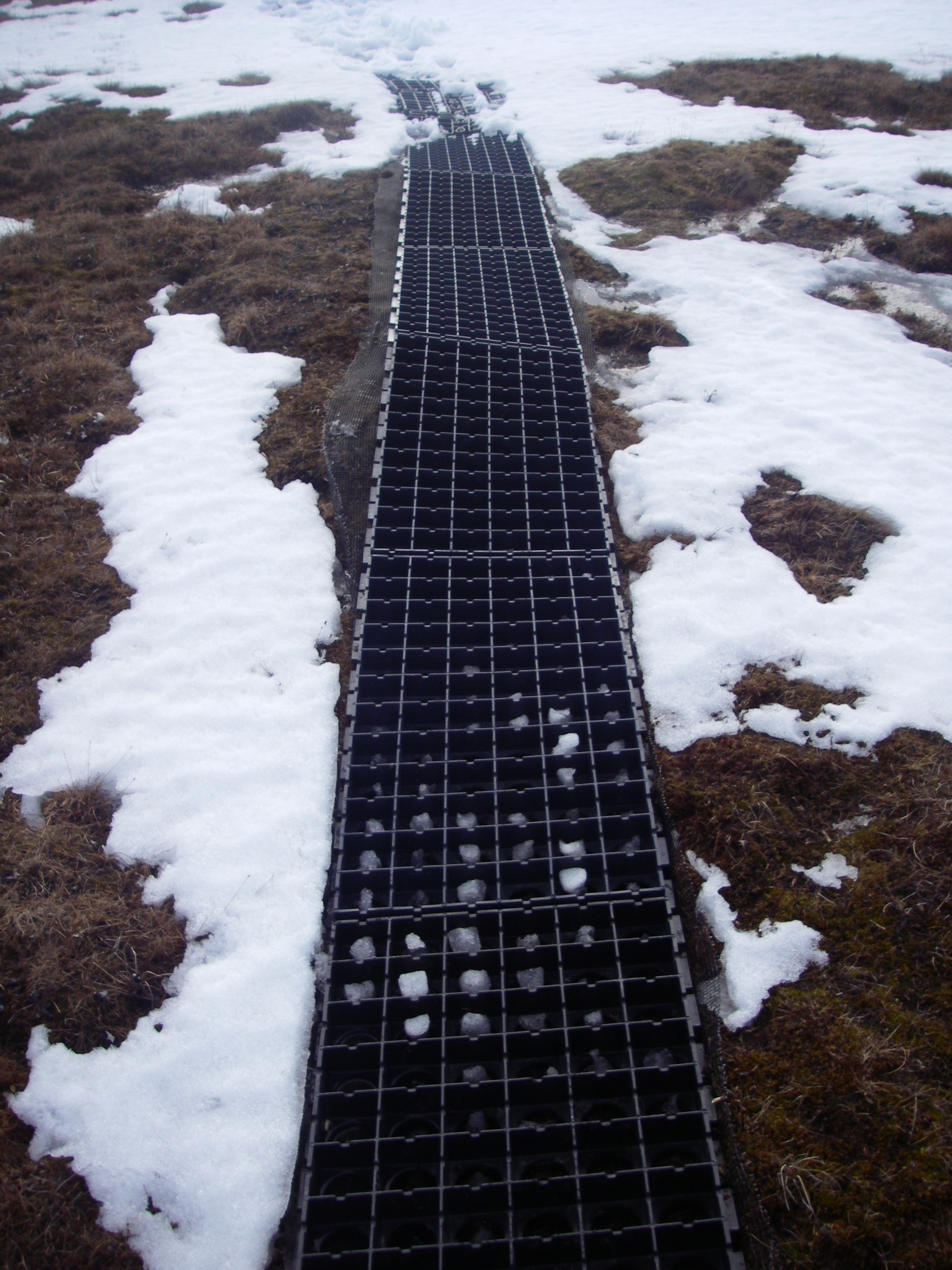 The plastic walkway that was built for the research team to get out to the biocomplexity site at the Barrow Environmental Observatory. The walkway prevents damage to the tundra, at least in theory.