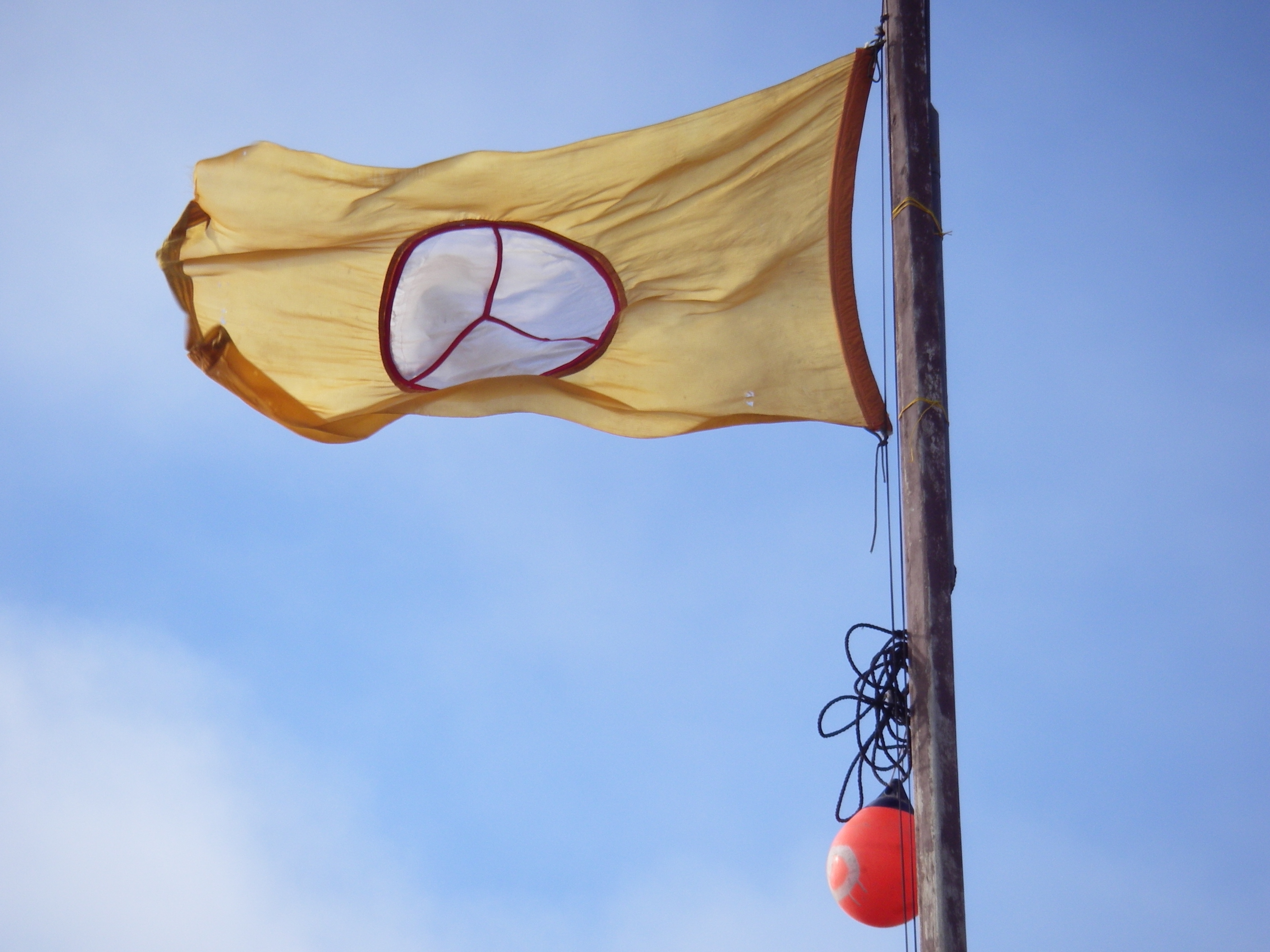 The flags of the whaling crews fly at each Nalukatuk in Barrow. Flying one flag represents one whale harvested during the season.