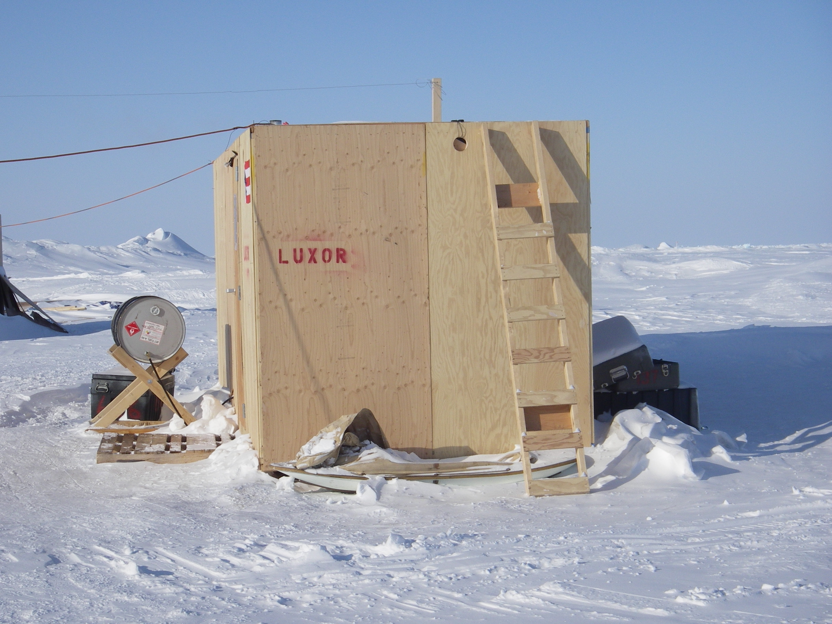 The Luxor, an 8'X20' hut, is Robert Harris' home for two weeks. At the SEDNA/APLIS Ice Camp north of Prudhoe Bay, Alaska.