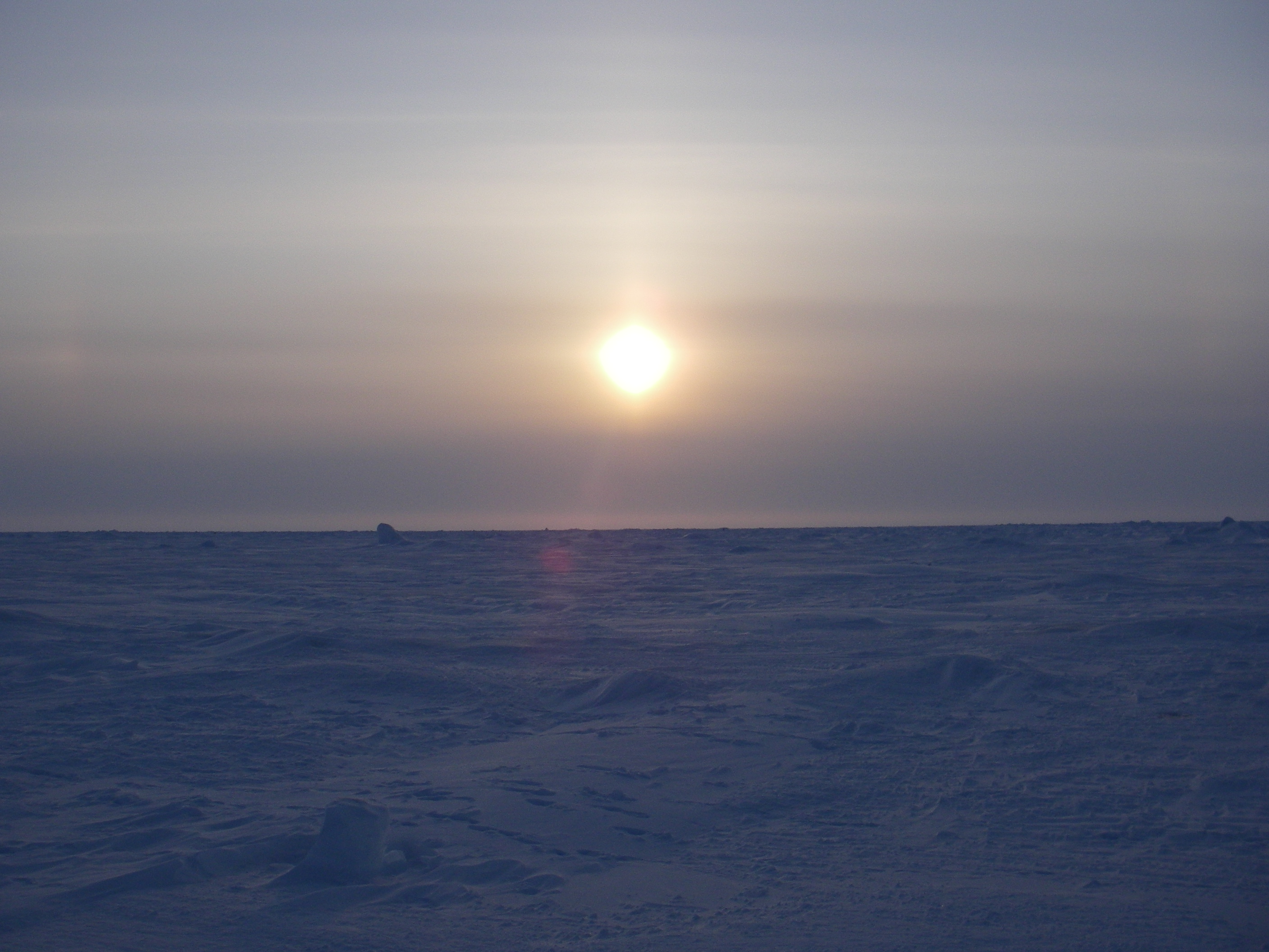 A sunrise over the ice at the at the SEDNA/APLIS Ice Camp north of Prudhoe Bay, Alaska.