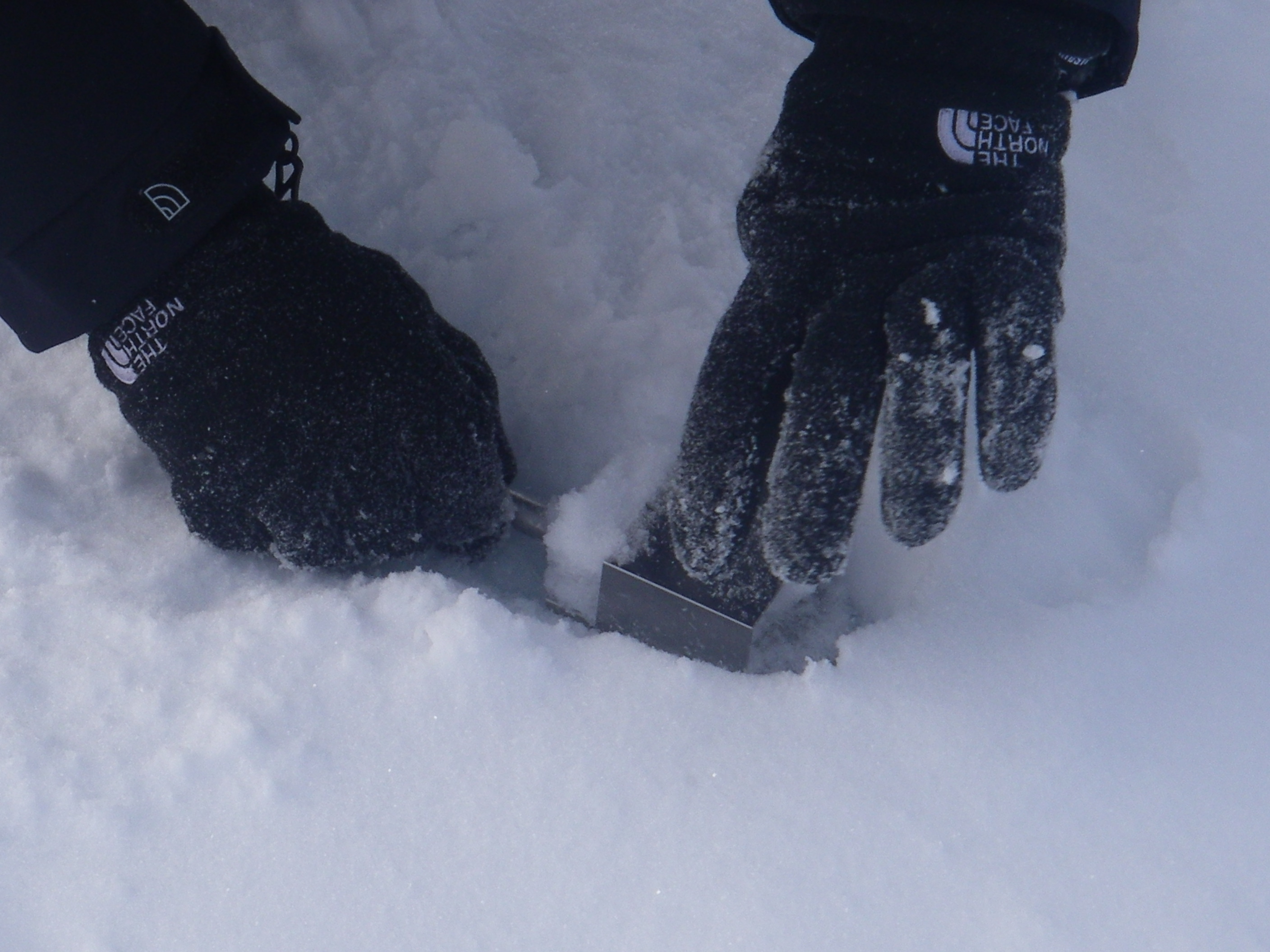 Katherine Giles takes a snow density measurement. At the SEDNA/APLIS Ice Camp north of Prudhoe Bay, Alaska.