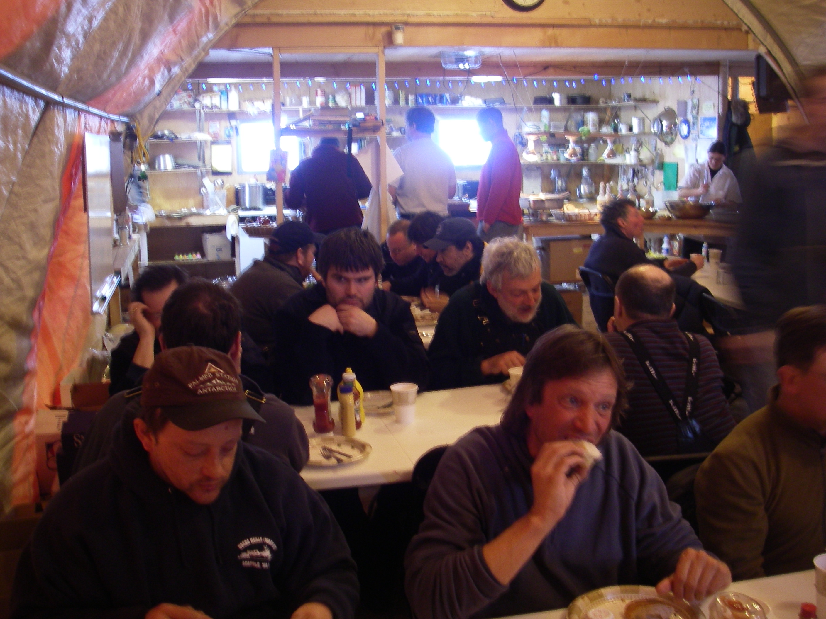 Dinner in the mess hall at the SEDNA/APLIS Ice Camp north of Prudhoe Bay, Alaska.
