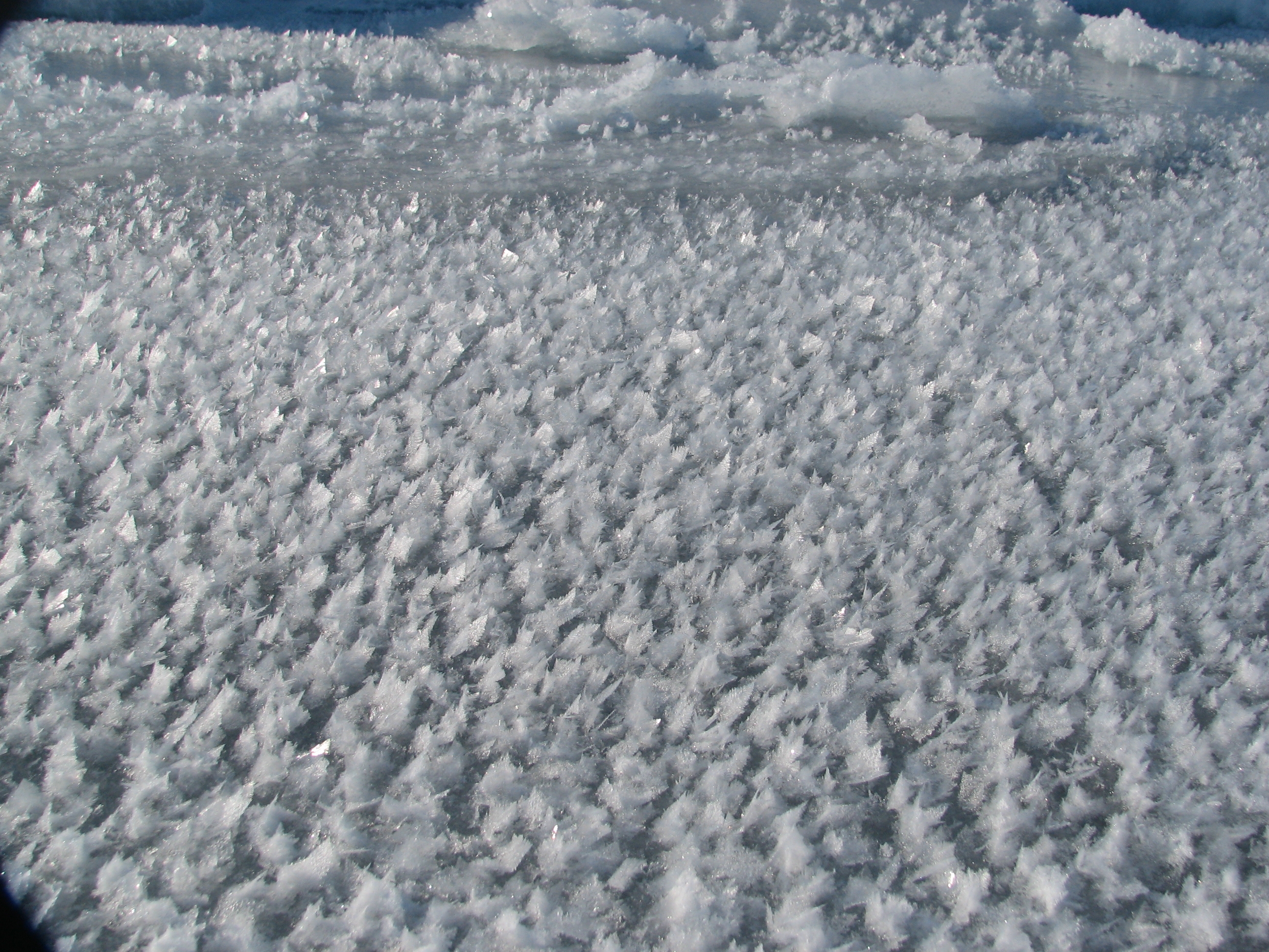 A close-up of frost flowers forming on the refreezing ice of a lead. At the SEDNA/APLIS Ice Camp north of Prudhoe Bay, Alaska.