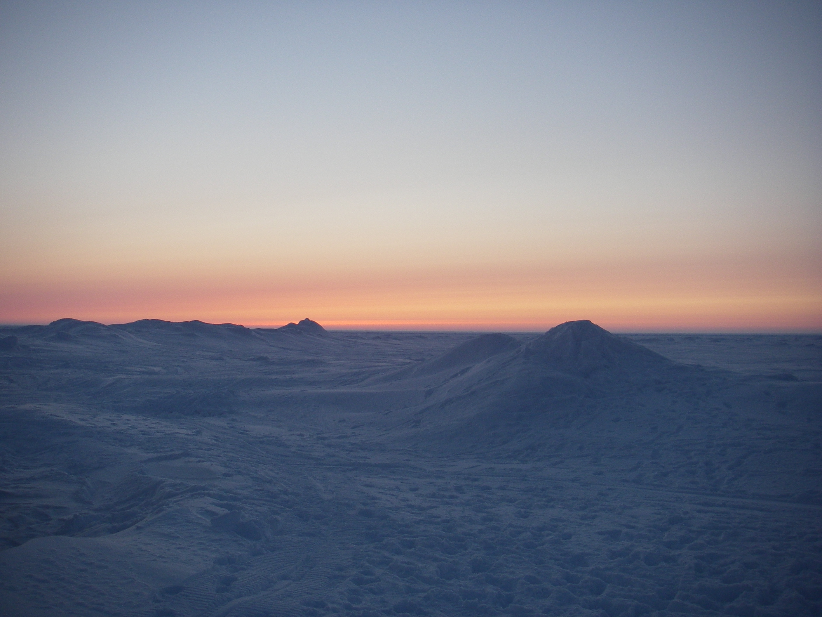 Sunset over the Arctic ice at the SEDNA/APLIS Ice Camp north of Prudhoe Bay, Alaska.