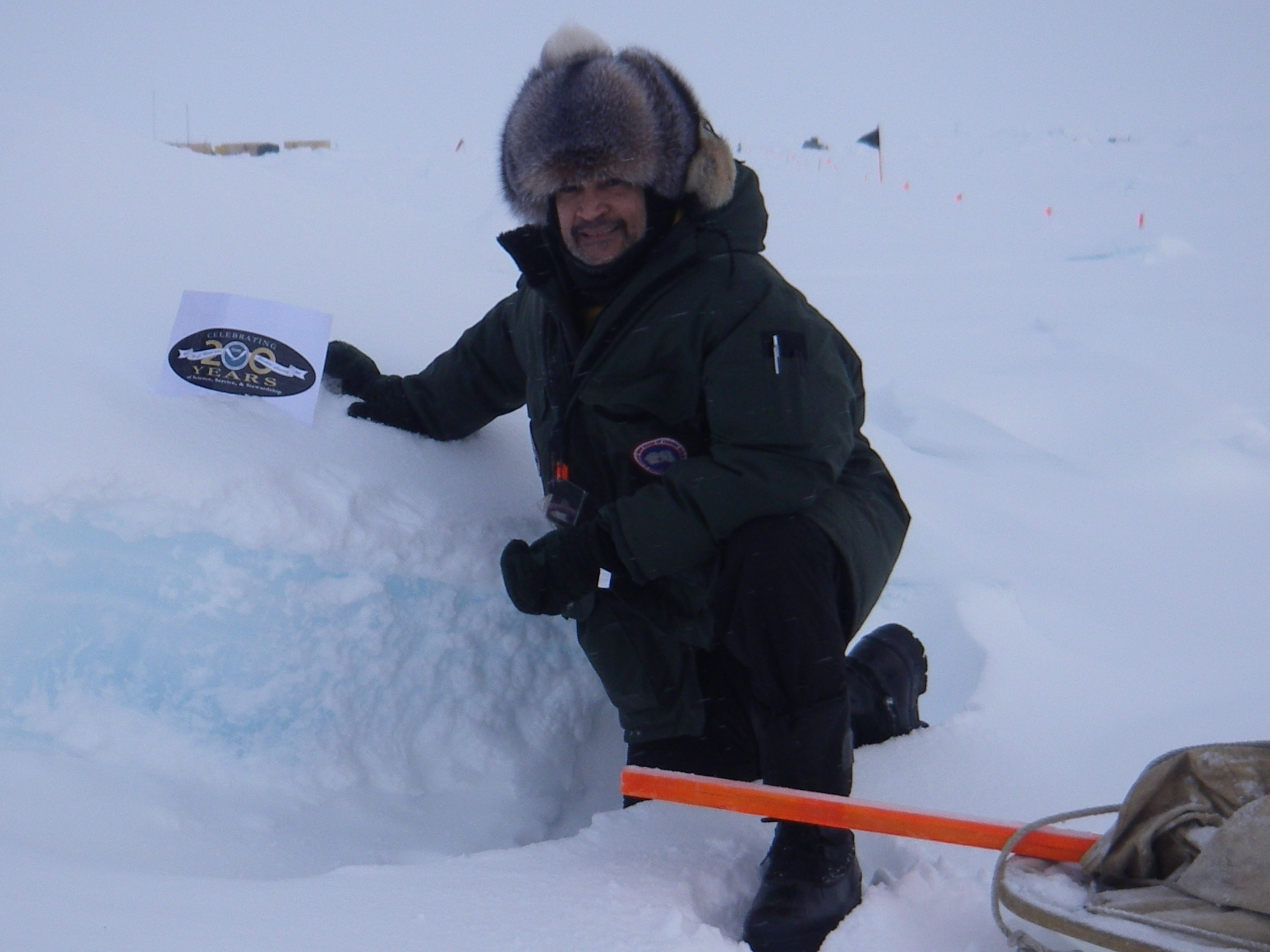 Ice Scientist, Dr. Pablo Clemente-Colon of the National Ice Center in Washington, D.C. At the SEDNA/APLIS Ice Camp north of Prudhoe Bay, Alaska.