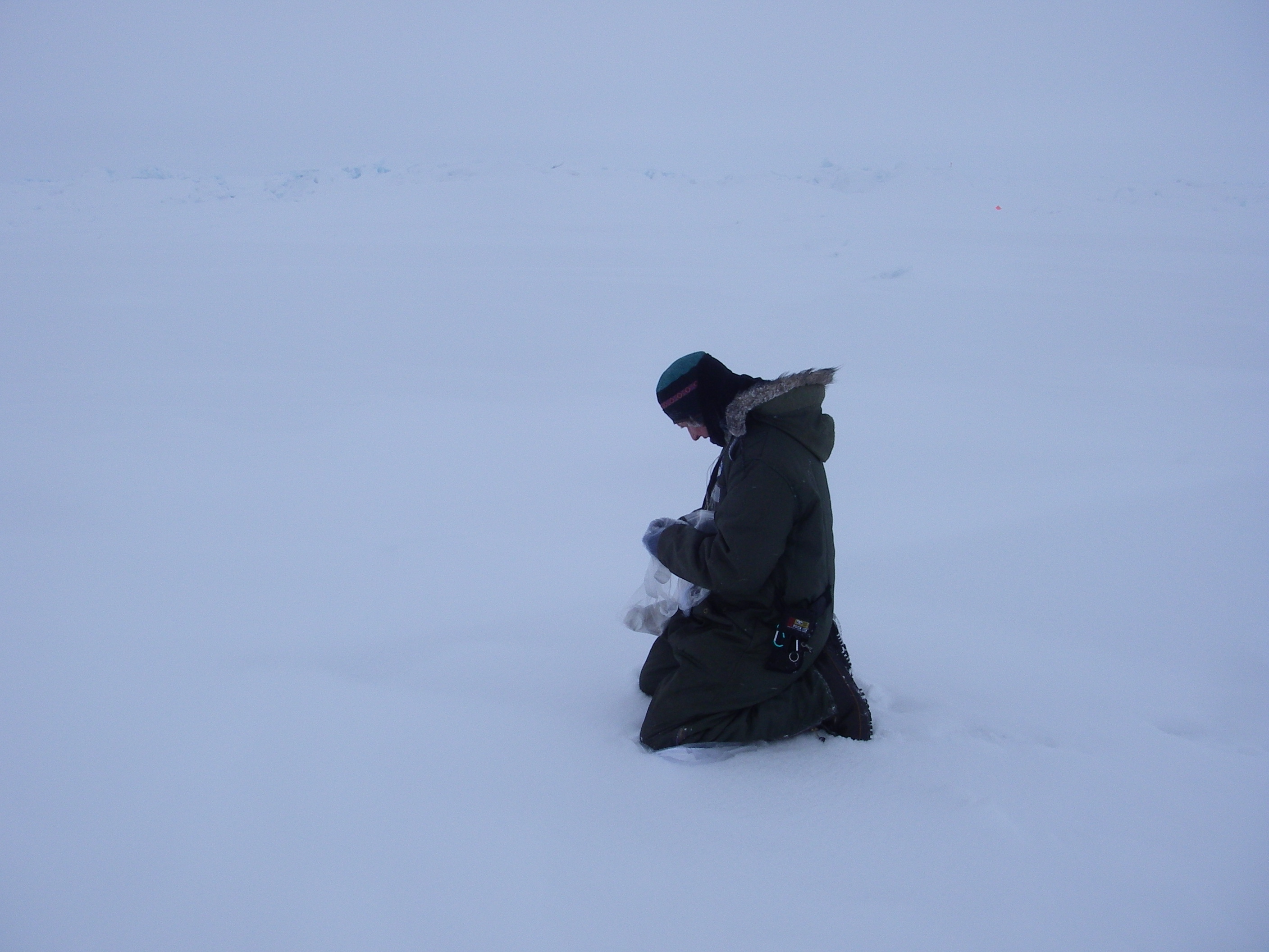 Cathy Geiger prepares to take a soot sample. At the SEDNA/APLIS Ice Camp north of Prudhoe Bay, Alaska.