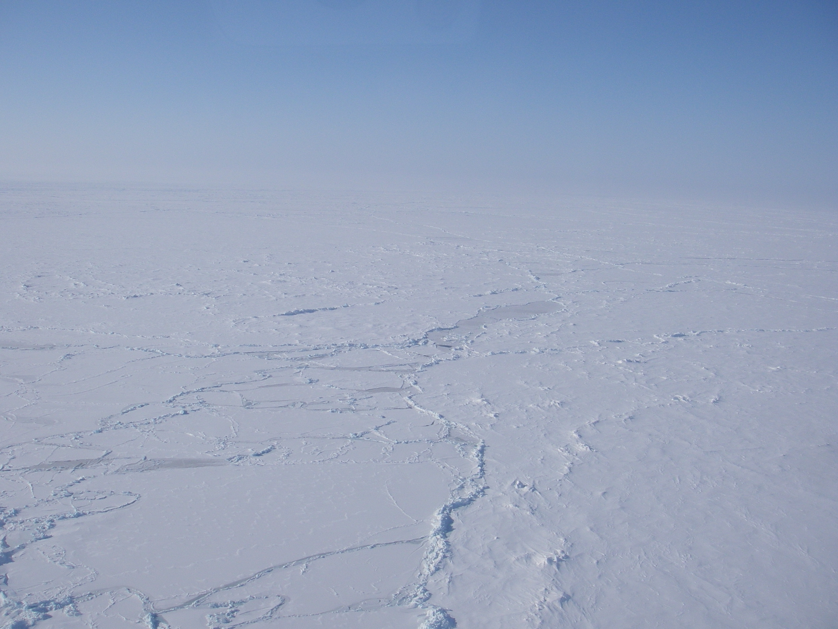 A view of the sea ice from the helicopter. Near the SEDNA/APLIS Ice Camp north of Prudhoe Bay, Alaska.