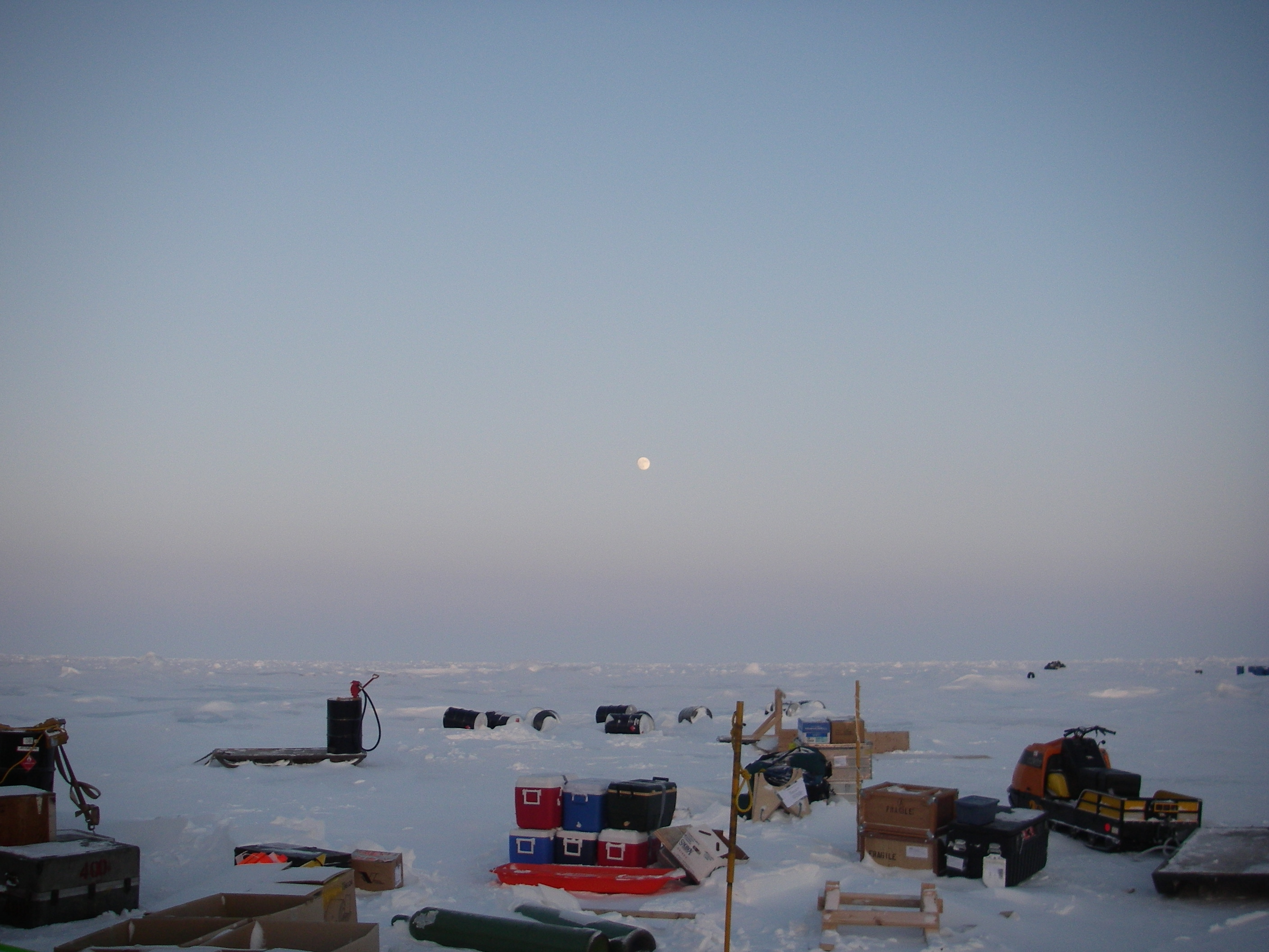 Moonrise over the SEDNA/APLIS Ice Camp north of Prudhoe Bay, Alaska.