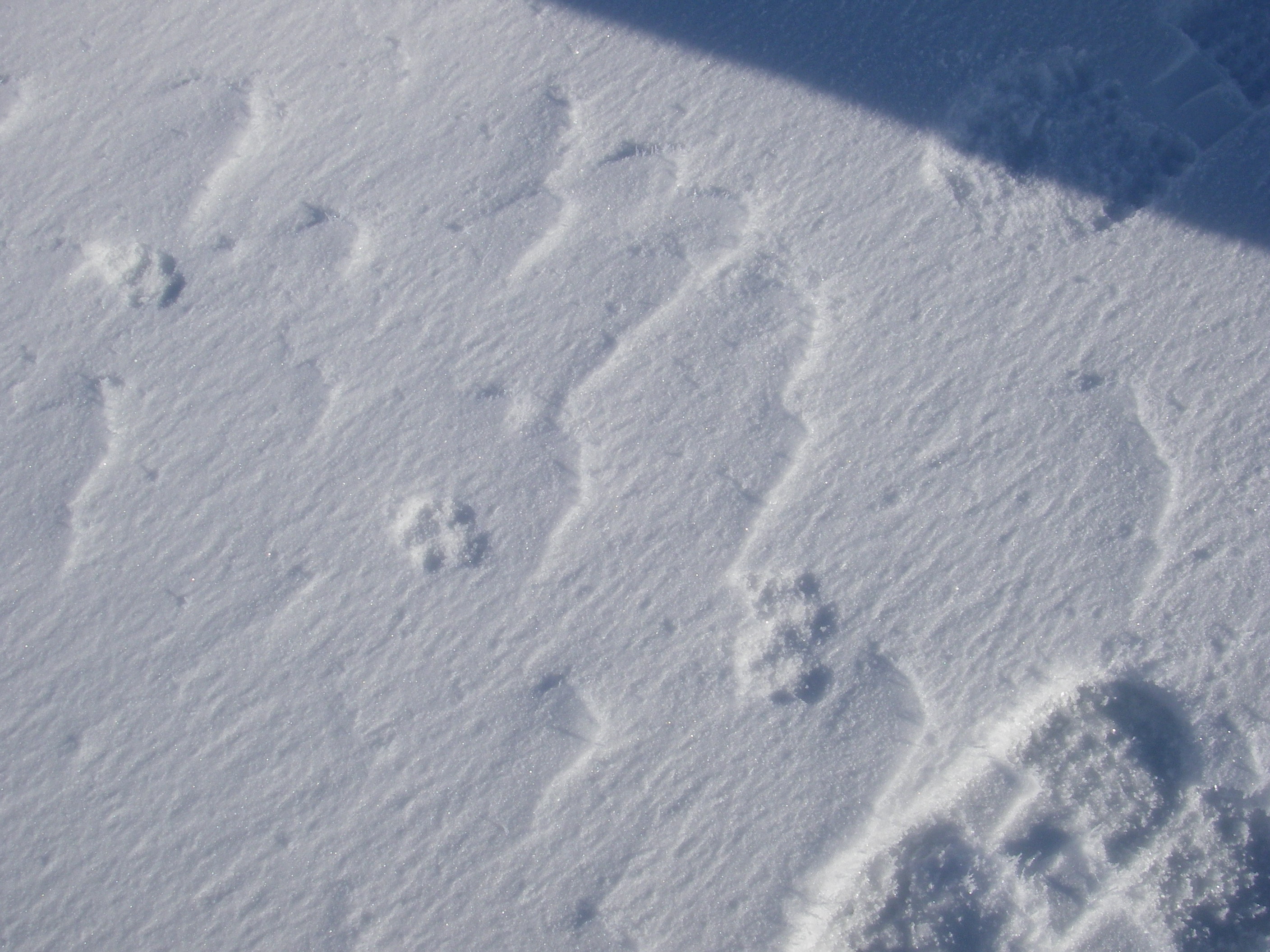 Fresh fox tracks and boot prints. At the SEDNA/APLIS Ice Camp north of Prudhoe Bay, Alaska.