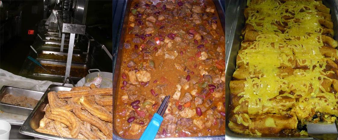 A close-up of the churros, enchiladas, and the “Double Daves Chili” in the serving line on the mess deck of the USCGC Healy icebreaker, on the Bering Sea.