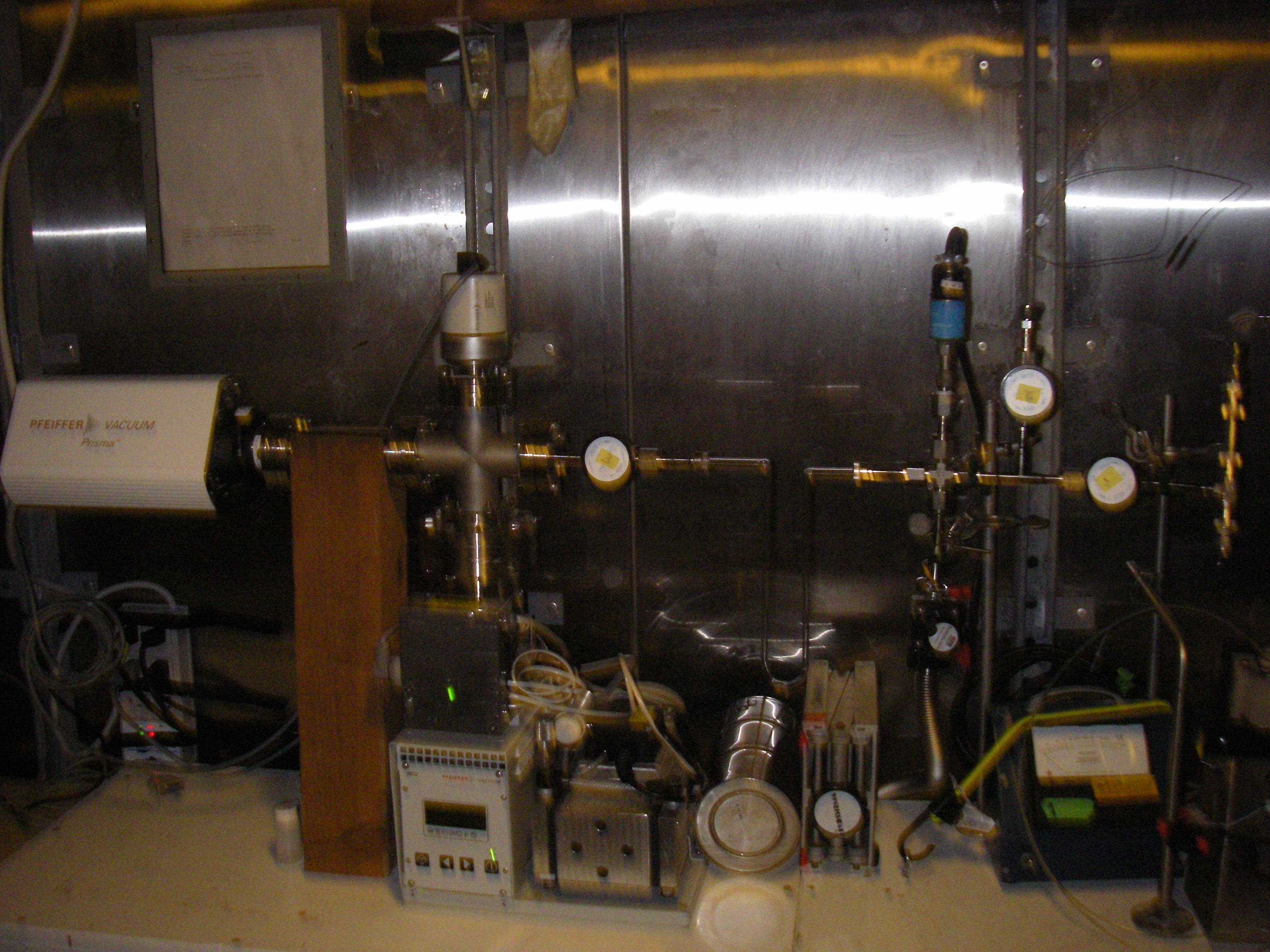 This MIMS will measure amounts of nitrogen, oxygen, and argon from the flux tubes in the reefer. Inside the reefer room (walk-in freezer) on the USCGC Healy icebreaker, on the Bering Sea.