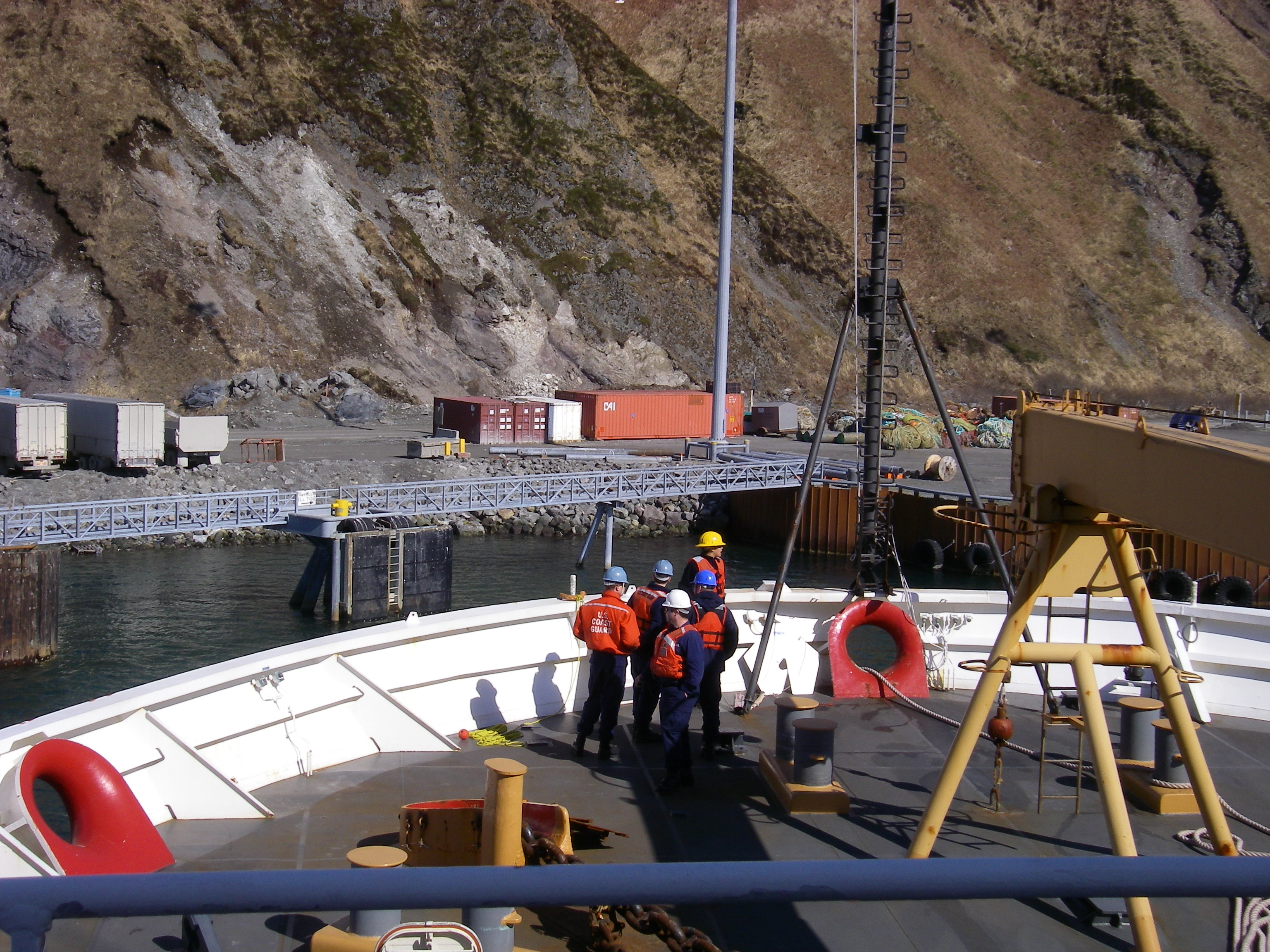 USCGC Healy icebreaker and crew leaving the International Port of Dutch Harbor and heading out into the Bering Sea.