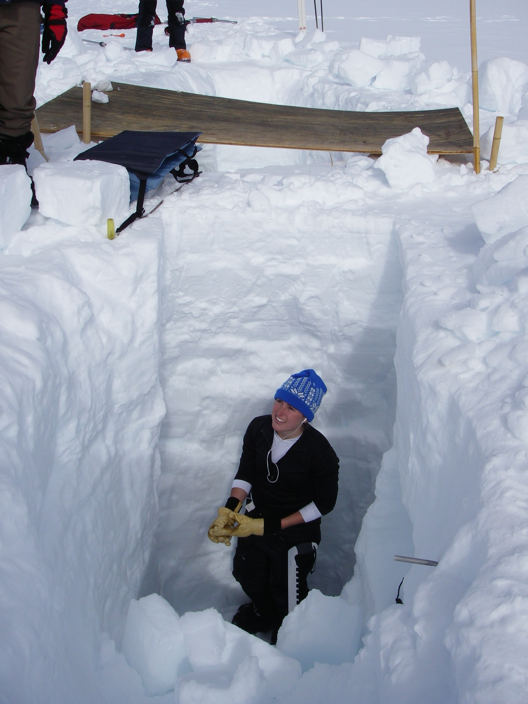 Kristina Song helps her team dig a 10 foot deep pit to study the layers of the snow. The all female team works out in the elements all day with no shelter and exerts more effort than any other team at Summit Camp. Impressive! Summit Camp, Greenland.