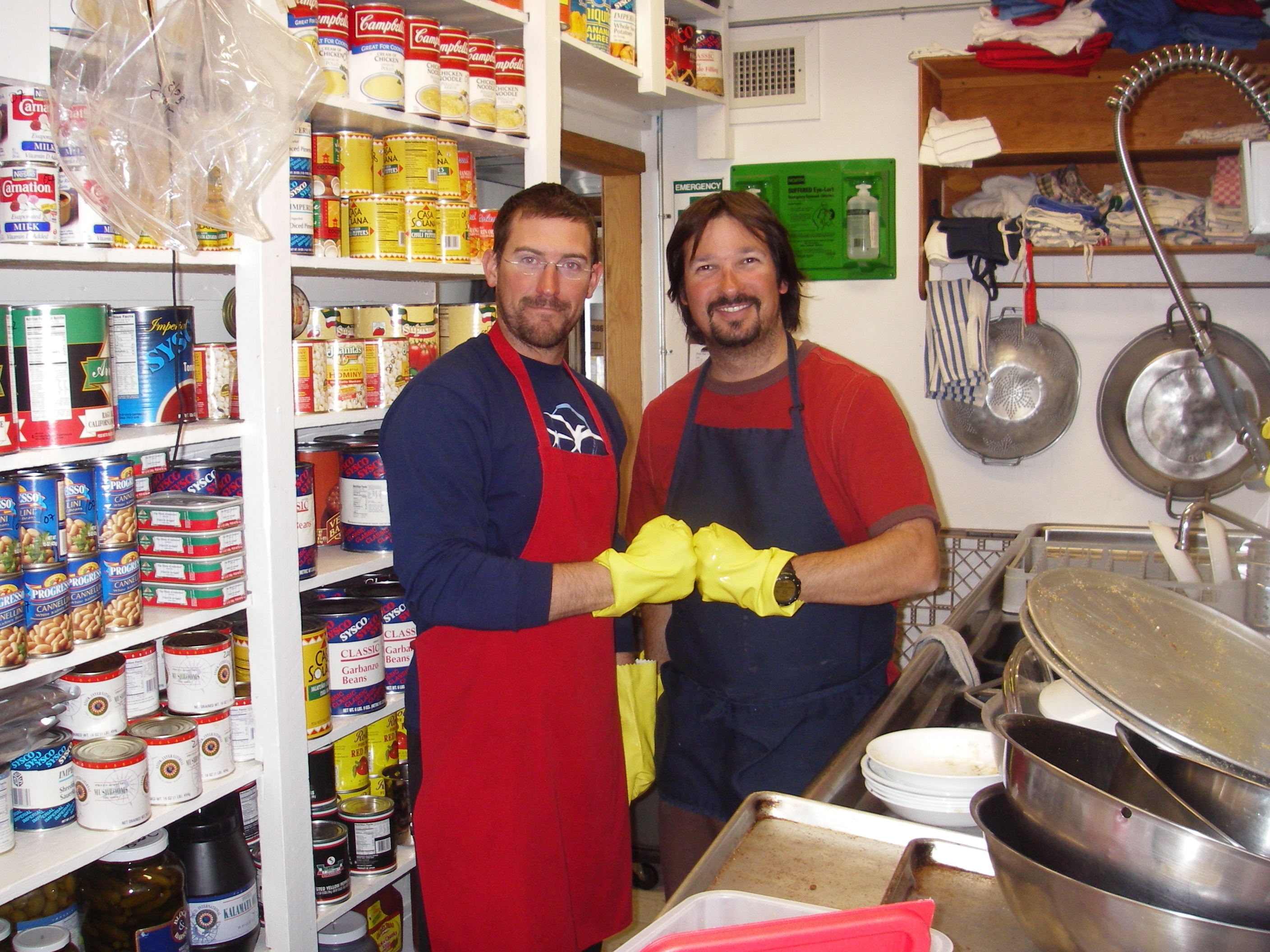 Team Craig (Craig Beals and Craig Clements) take on the duty of House Mouse at Summit Camp. Washing dishes and cleaning the Big House kept the team busy all day! Big House, Summit Camp, Greenland.