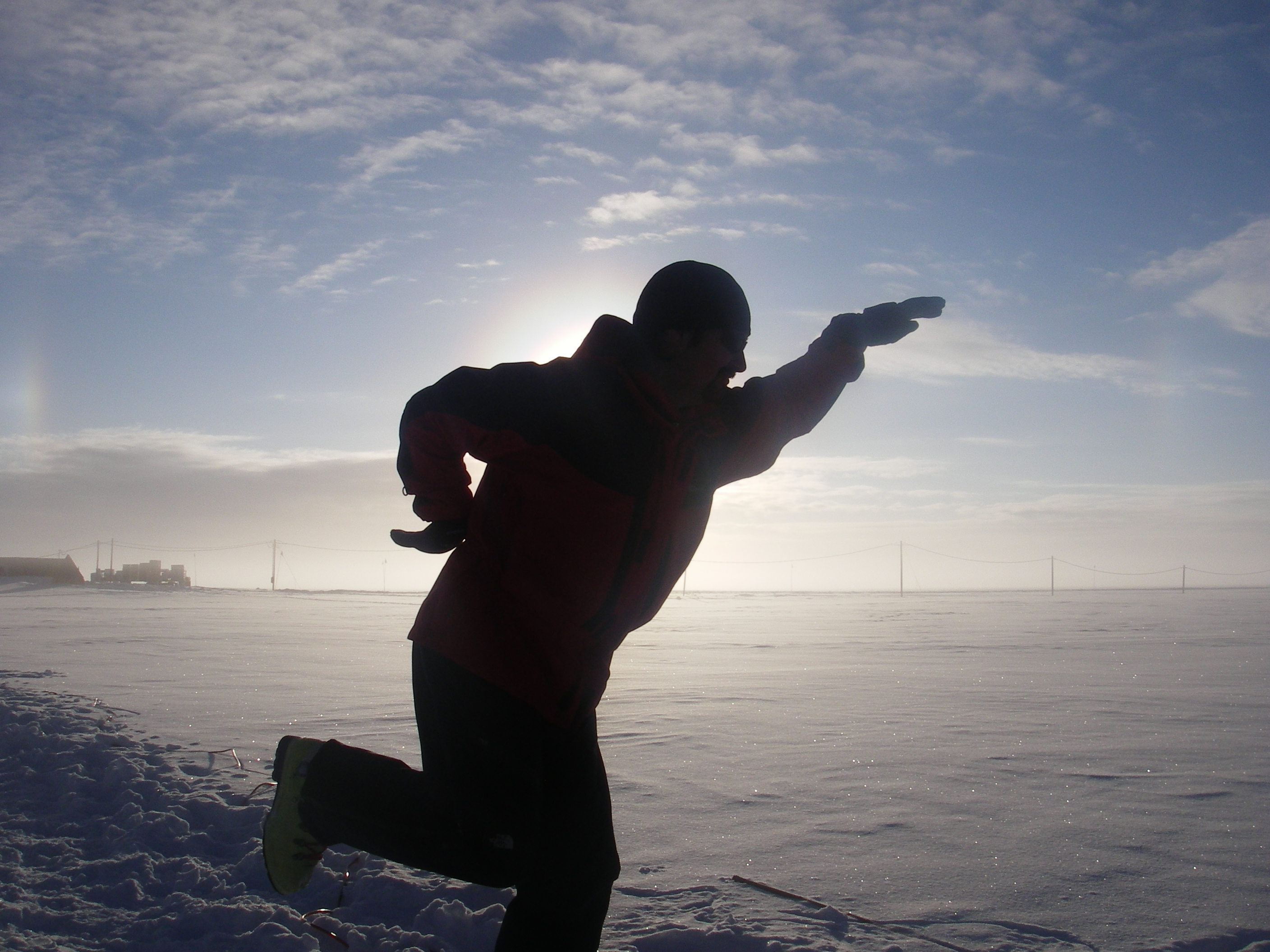 Craig Clements entertains the crew at Balloon Island during a frigid night of continuous tethersonde launches. Balloon Island, Summit Camp, Greenland.