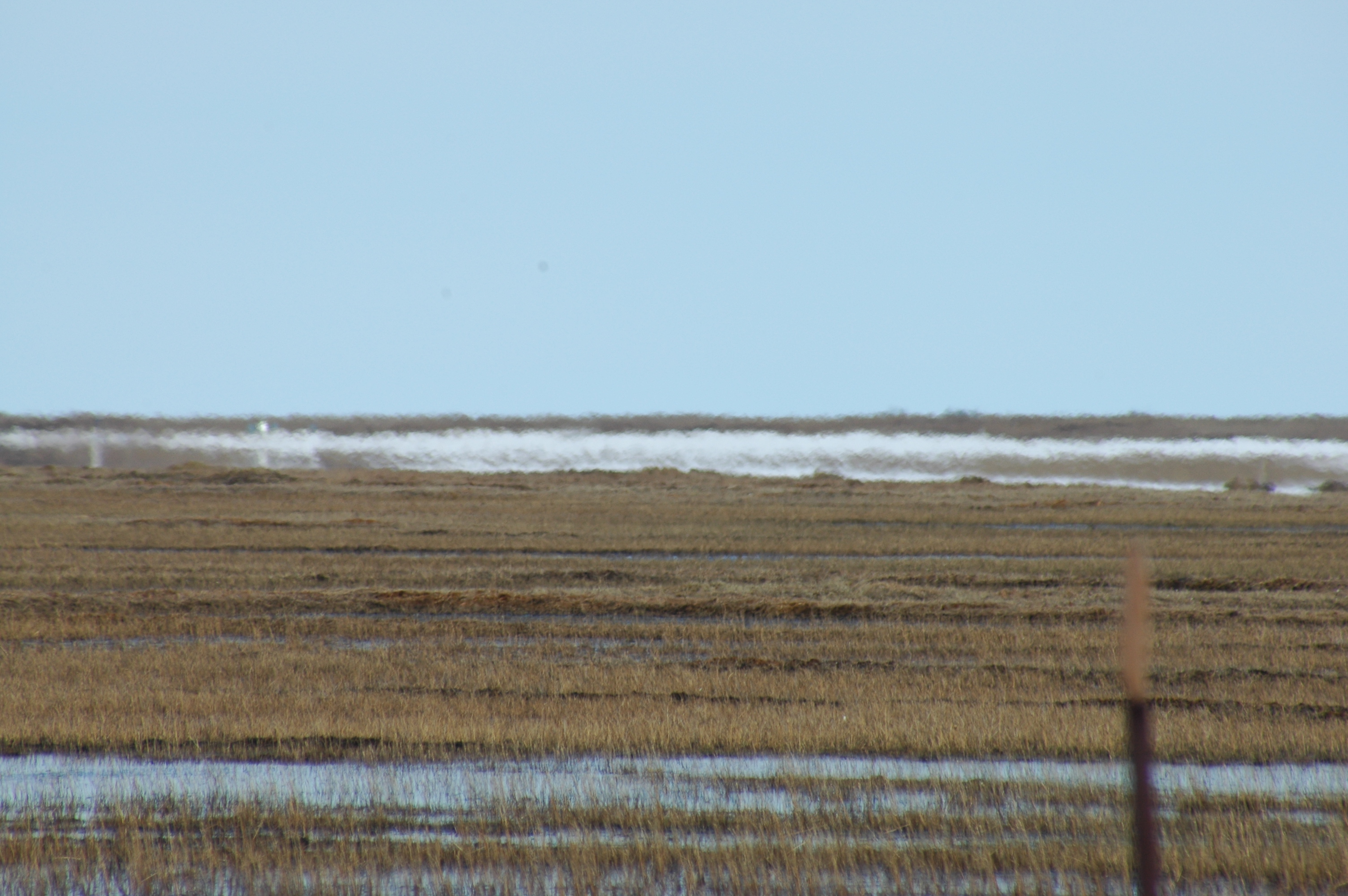 Due to difference in temperature between air and ground, mirages form on the horizon. At the Barrow Environmental Observatory (BEO) field site near Barrow, Alaska.