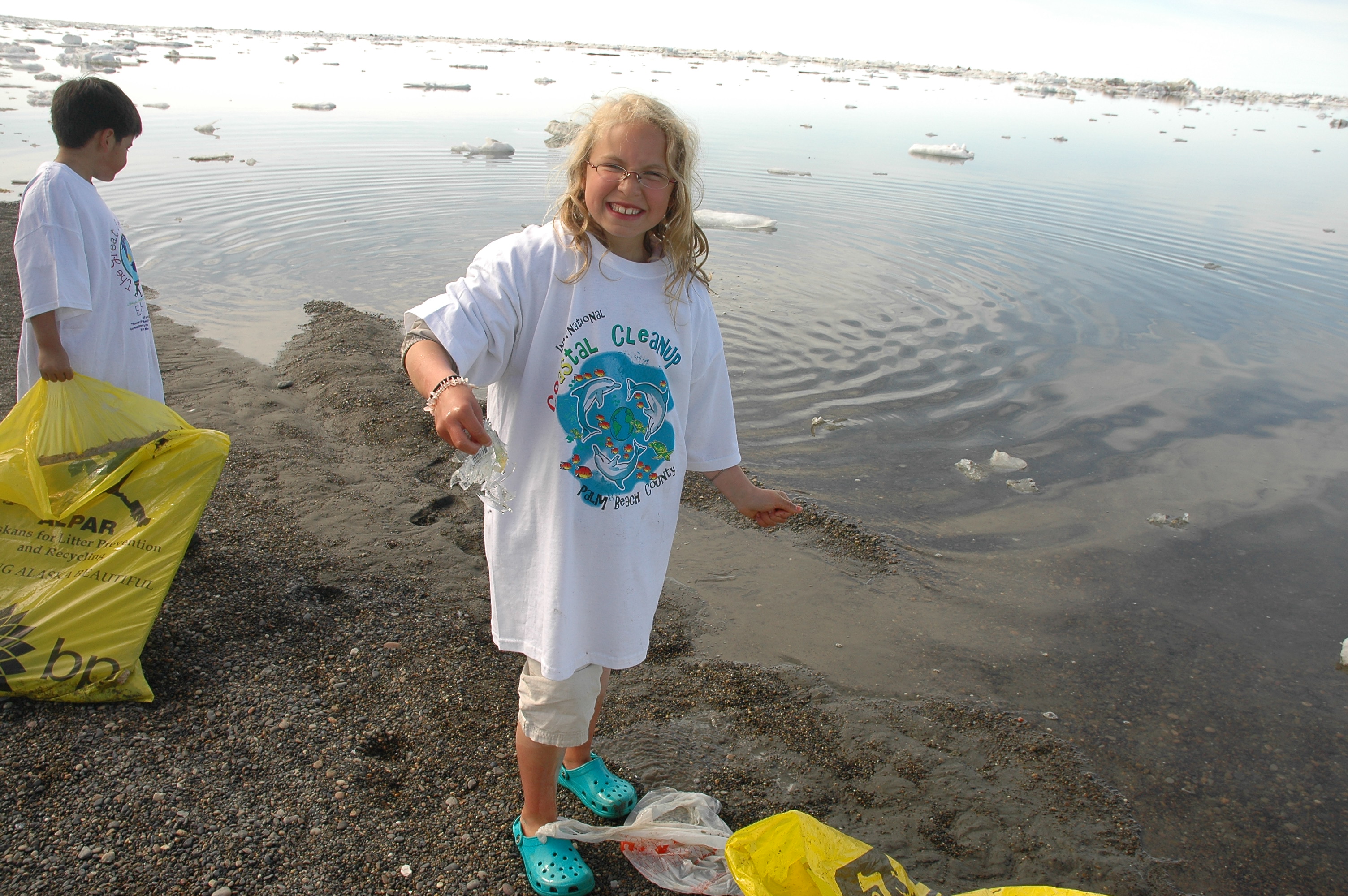 Elizabeth Eubanks says, "Can you see Melissa's red legs? This girl did NOT stop. She cleaned up the beach, even if it meant getting wet. Way to Go Melissa! I see a scientific career in this little girls eyes!" Barrow, Alaska.