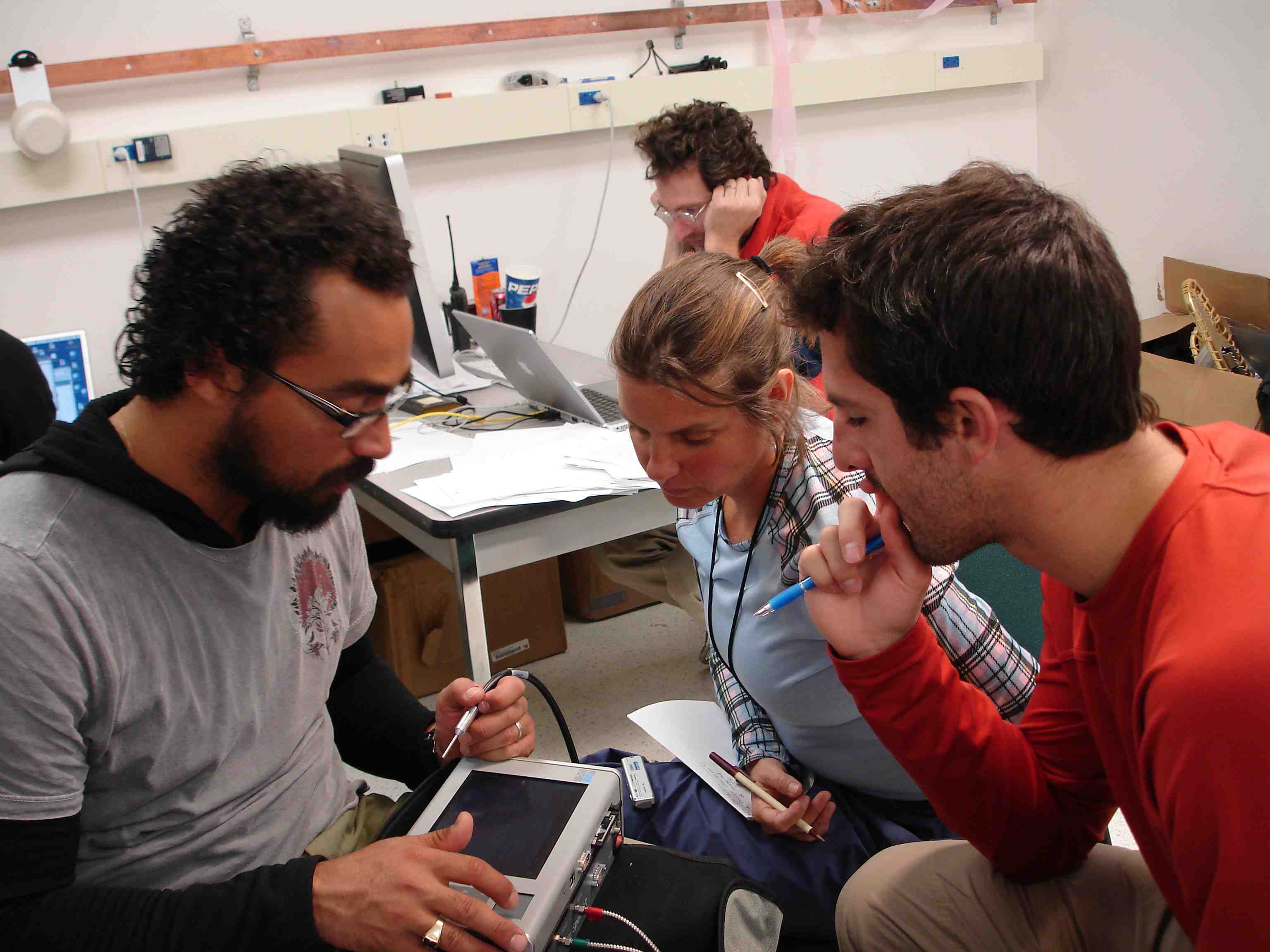 Paulo Olivas is teaching the team about the spectroradiometer that will be used in the field. At the Barrow Global Climate Research Facility in Barrow, Alaska.