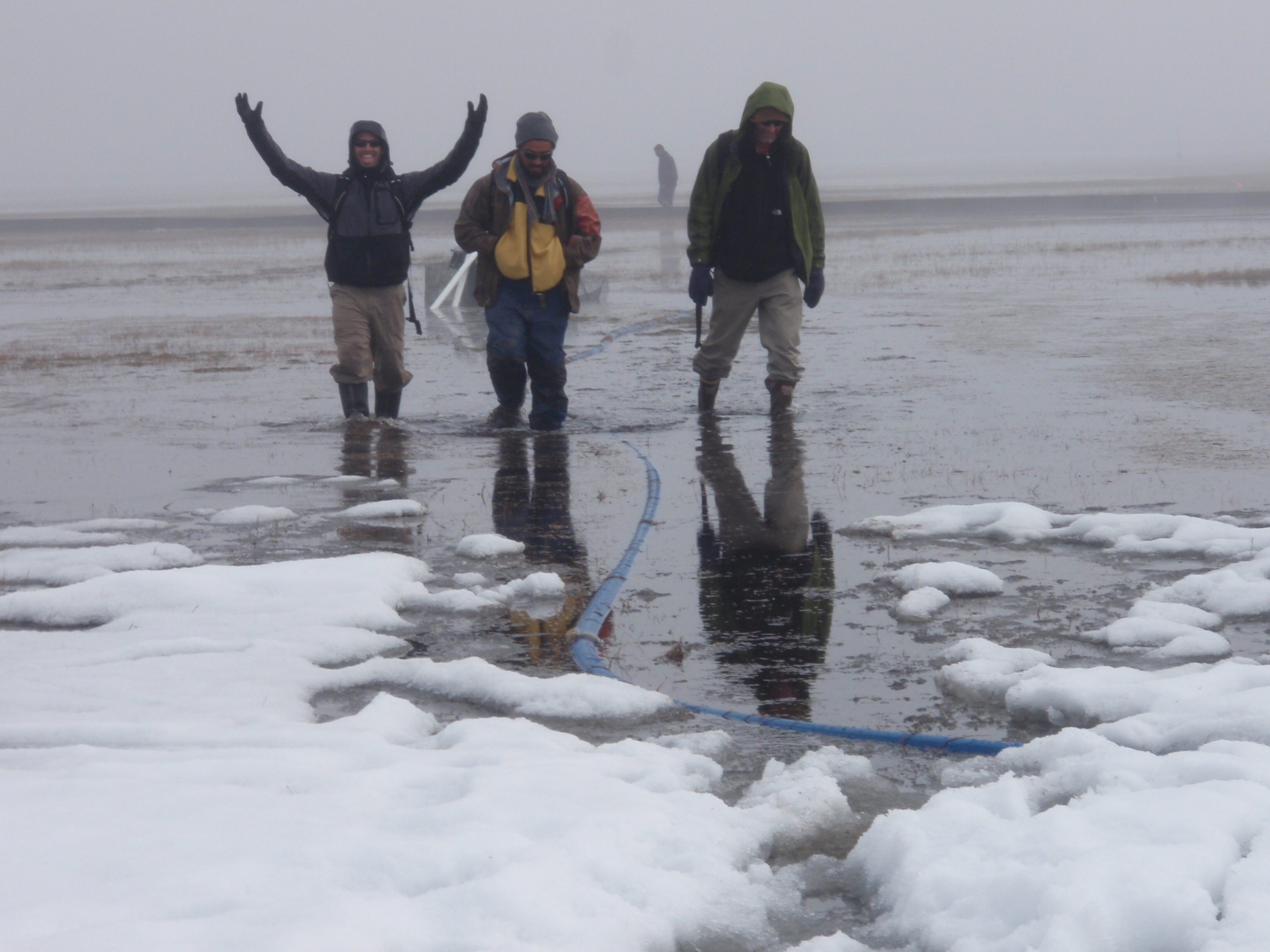 These three Florida International University guys are checking out the pump to make sure it is working properly. At the Barrow Environmental Observatory (BEO) field site near Barrow, Alaska.