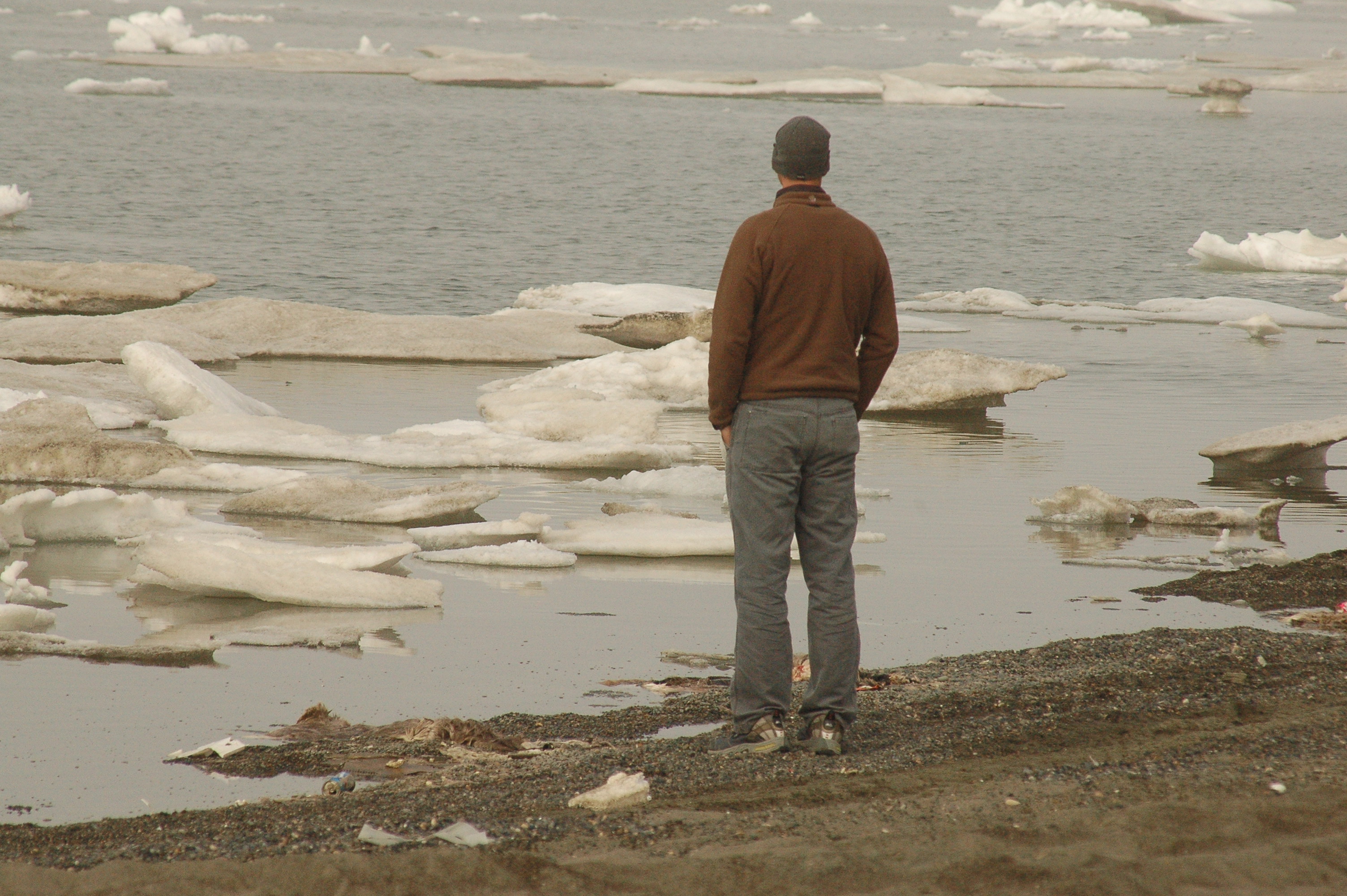 Rob Eubanks thinking out the Arctic Ocean. On the beach in Barrow, Alaska.